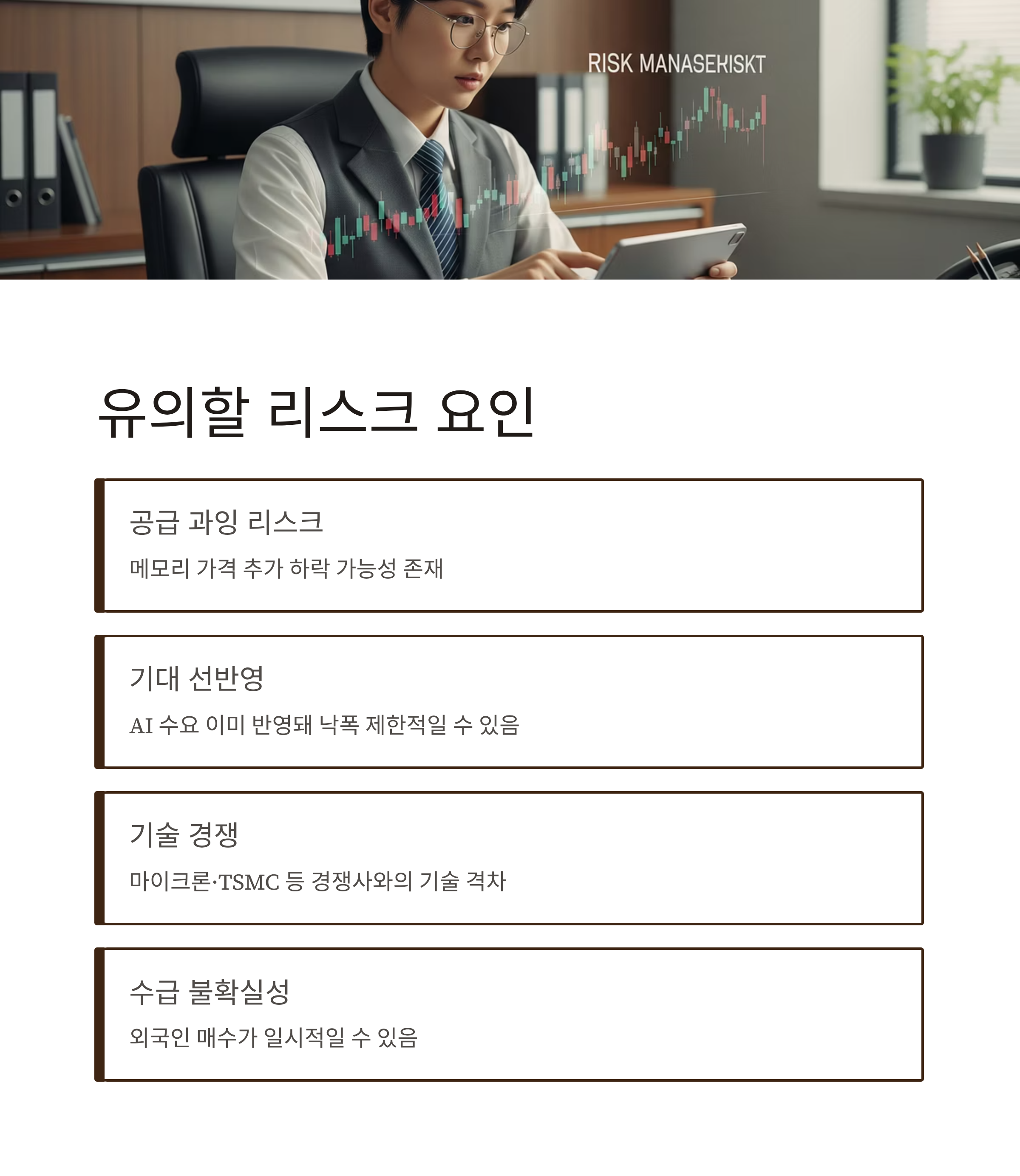 - 기술 경쟁 리스크: 마이크론·TSMC 등 경쟁사와의 기술 격차 여부