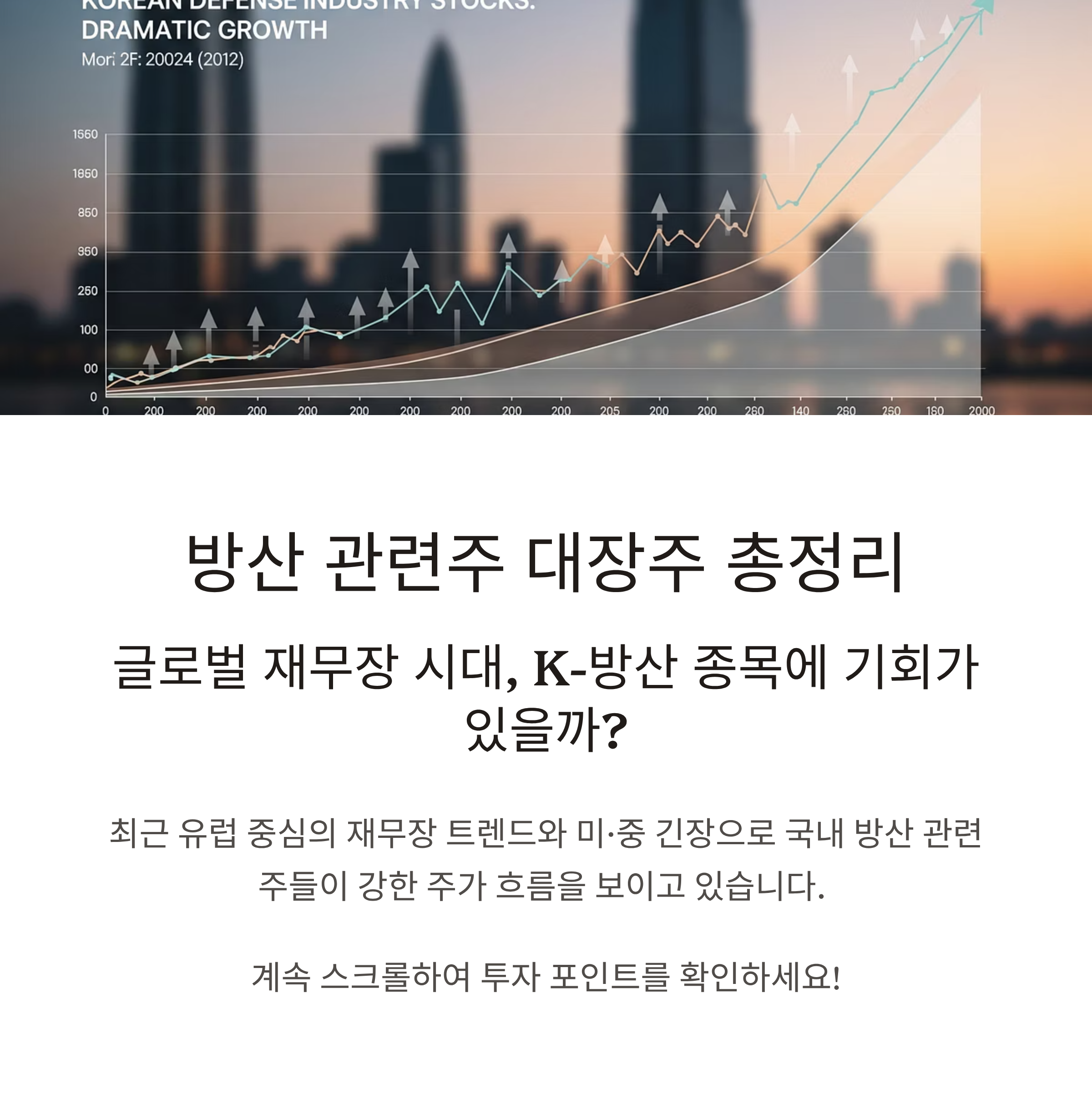 지금부터 방산 대장주와 핵심 종목을 중심으로 투자 포인트를 정리해드리겠습니다.