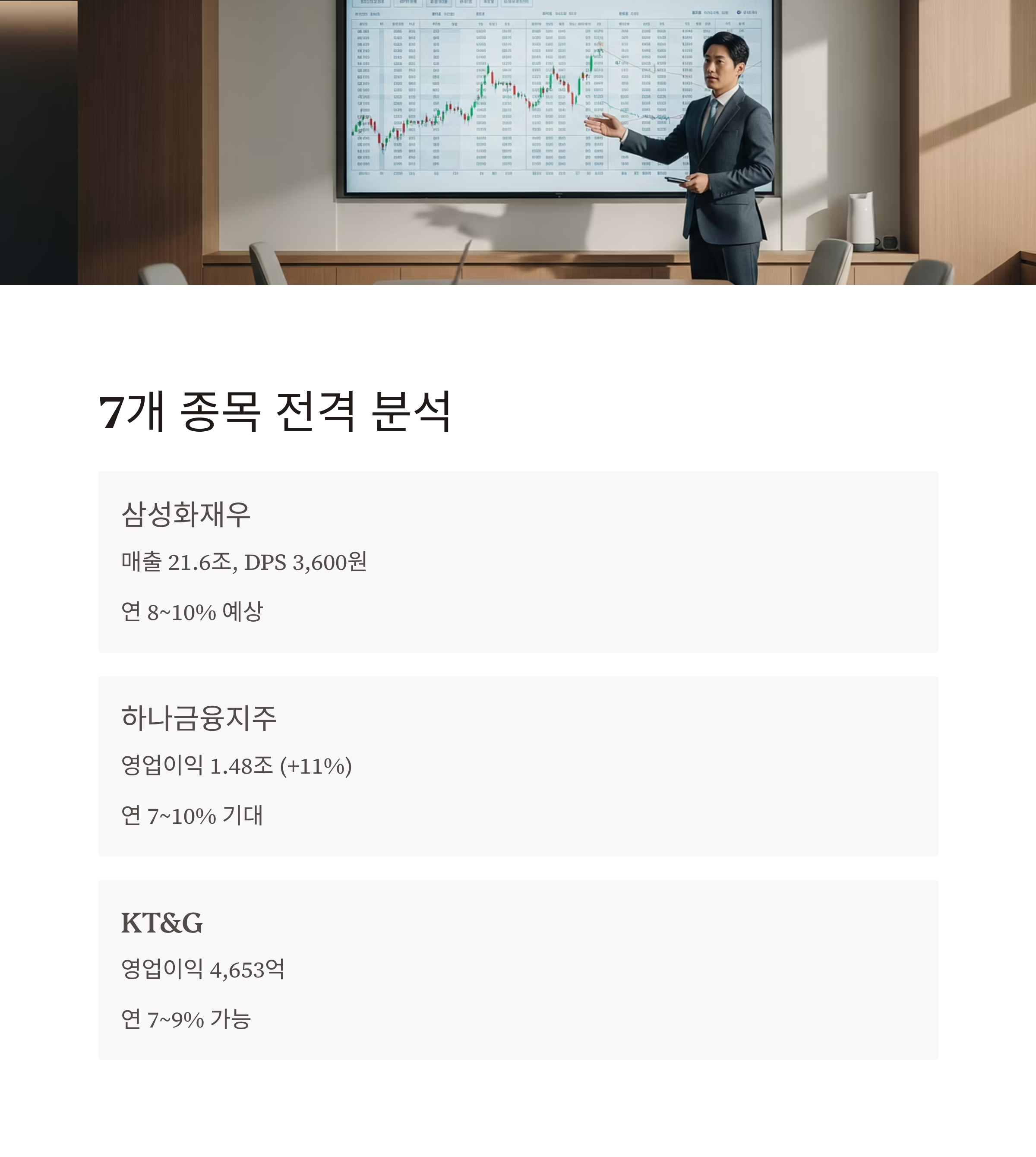 | KT&G | 약 7.2% | 담배·건기식·전자담배 등 포트폴리오 확장 중 | 약 7~9% |