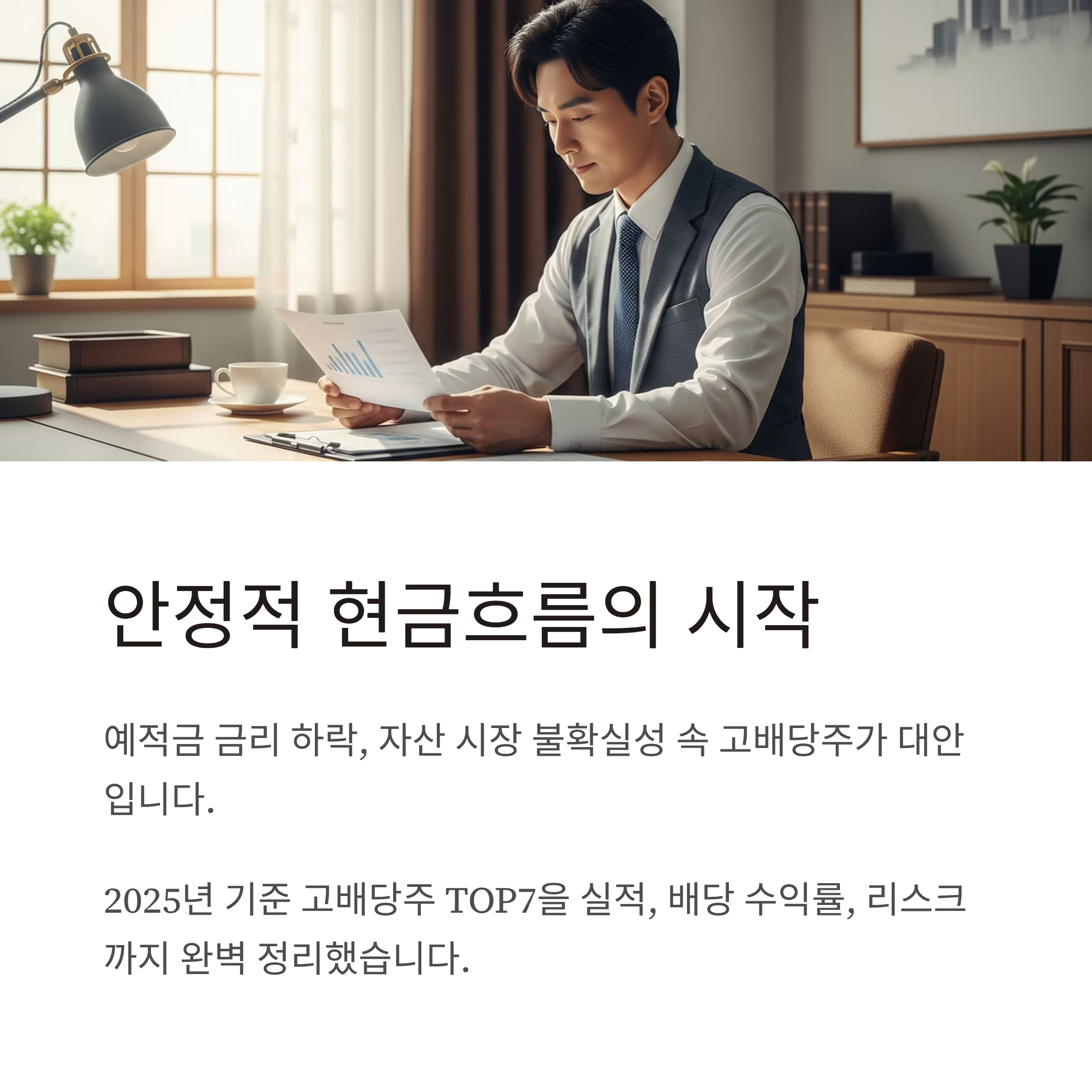 이번 글에서는 2025년 기준 고배당주 TOP7을 엄선하여 각 종목의 실적 요약, 배당 수익률, 리스크 요인, 3년 기대 수익률까지 모두 정리해드립니다.