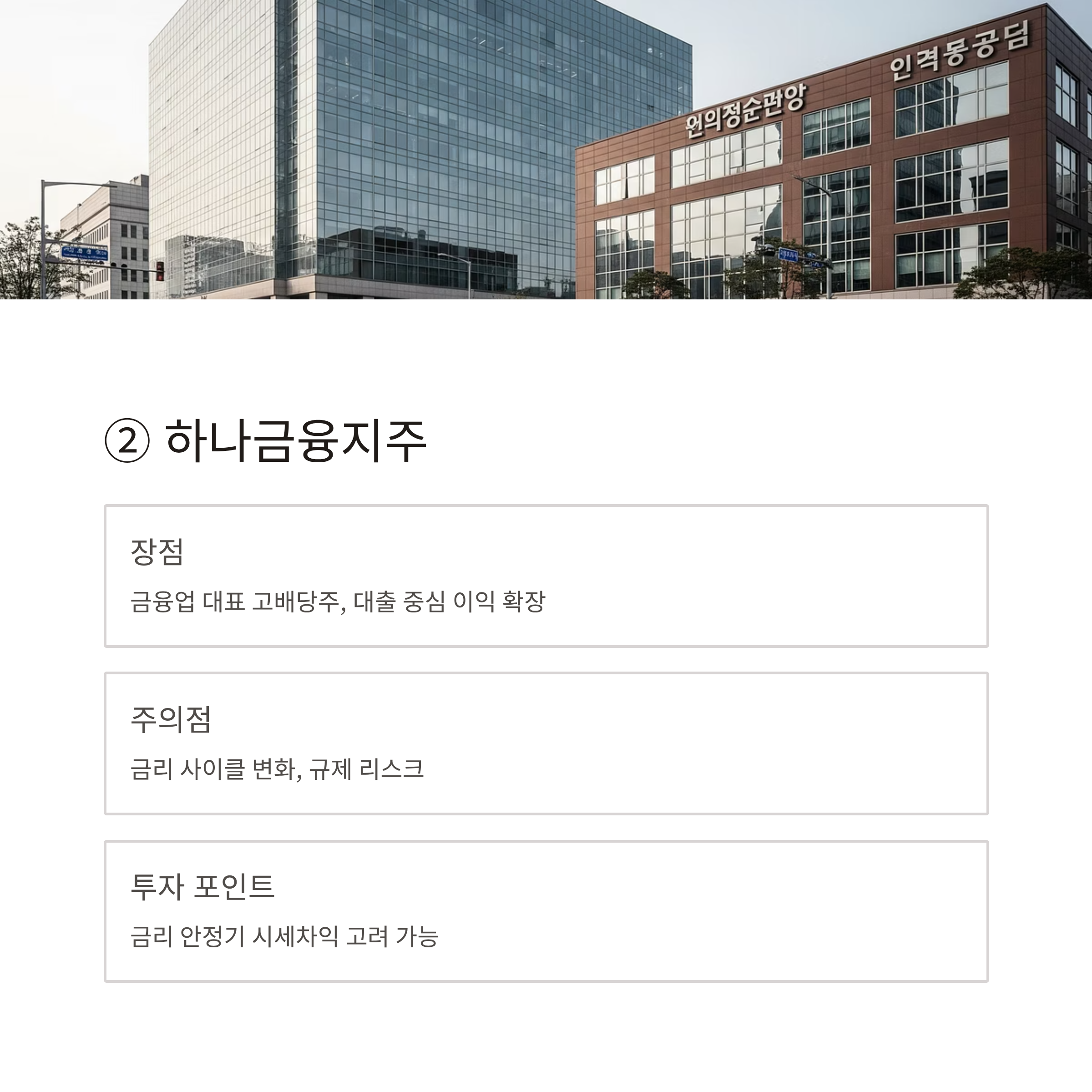 - 주의점: 금리 사이클 변화, 규제 리스크