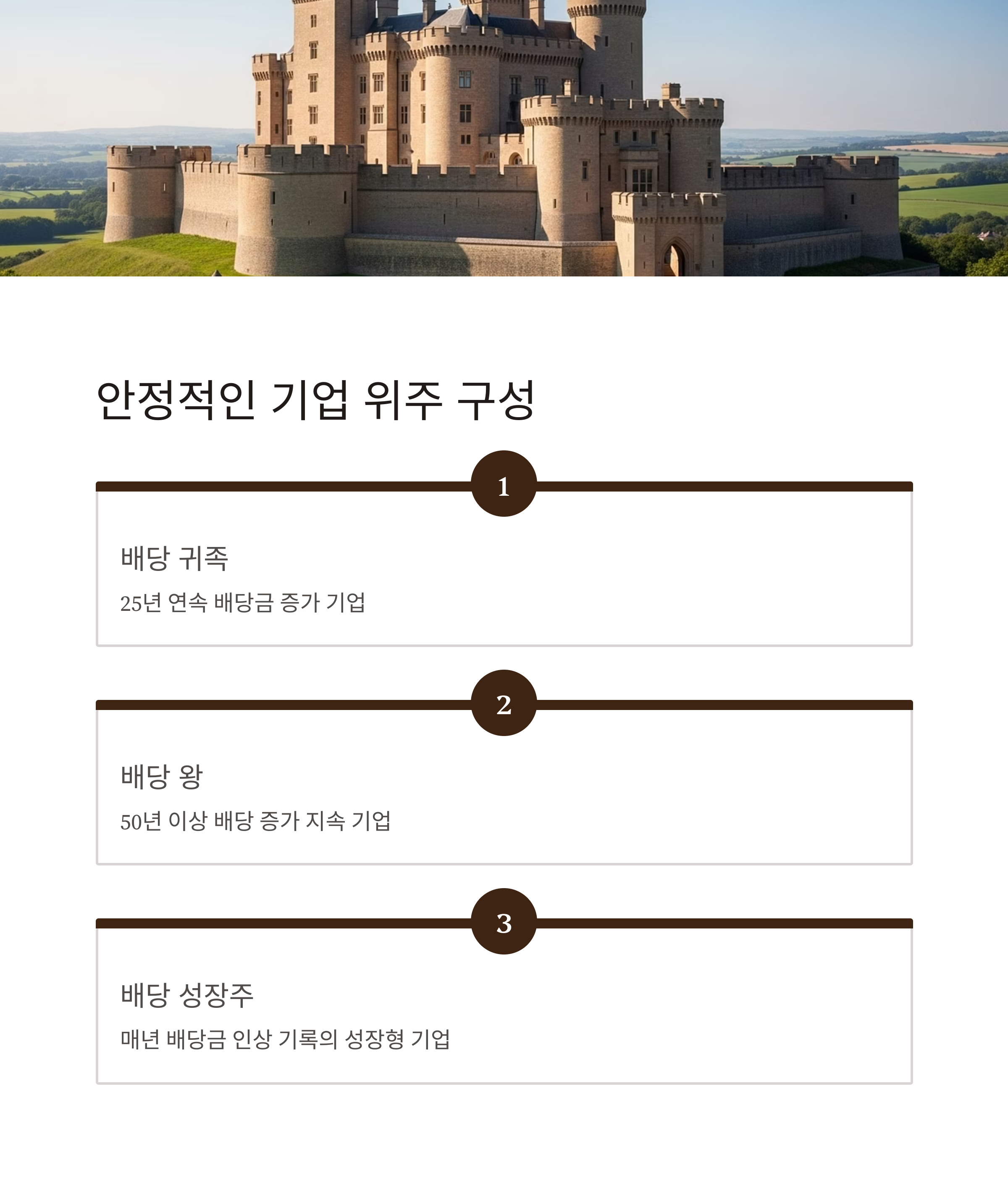 | 배당 귀족 | 25년 연속 배당 증가 기업 |