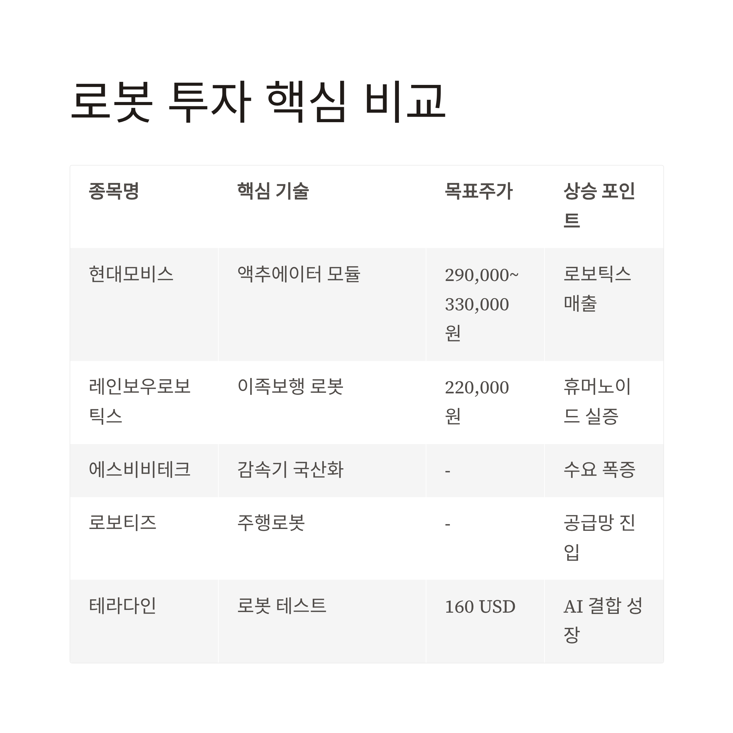 로봇 투자 핵심 비교표