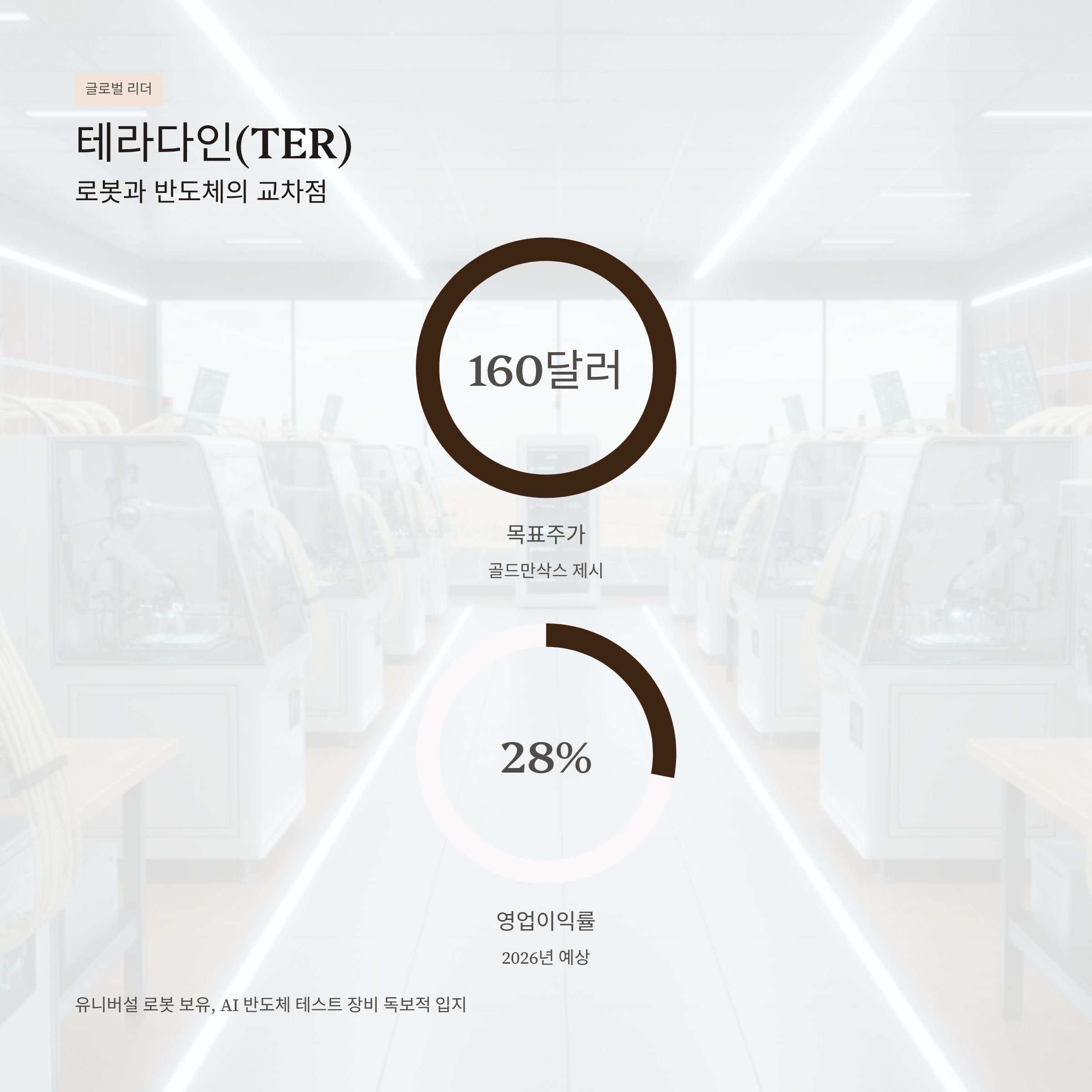 골드만삭스는 2025년 4분기 리포트에서 테라다인의 목표주가를 160달러로 제시했으며, 2026년 예상 영업이익률은 무려 28%에 달할 것으로 추정됩니다. 안정적인 잉여현금흐름과 꾸준한 자사주 매입 정책도 장기 투자에 매력적인 요소입니다.