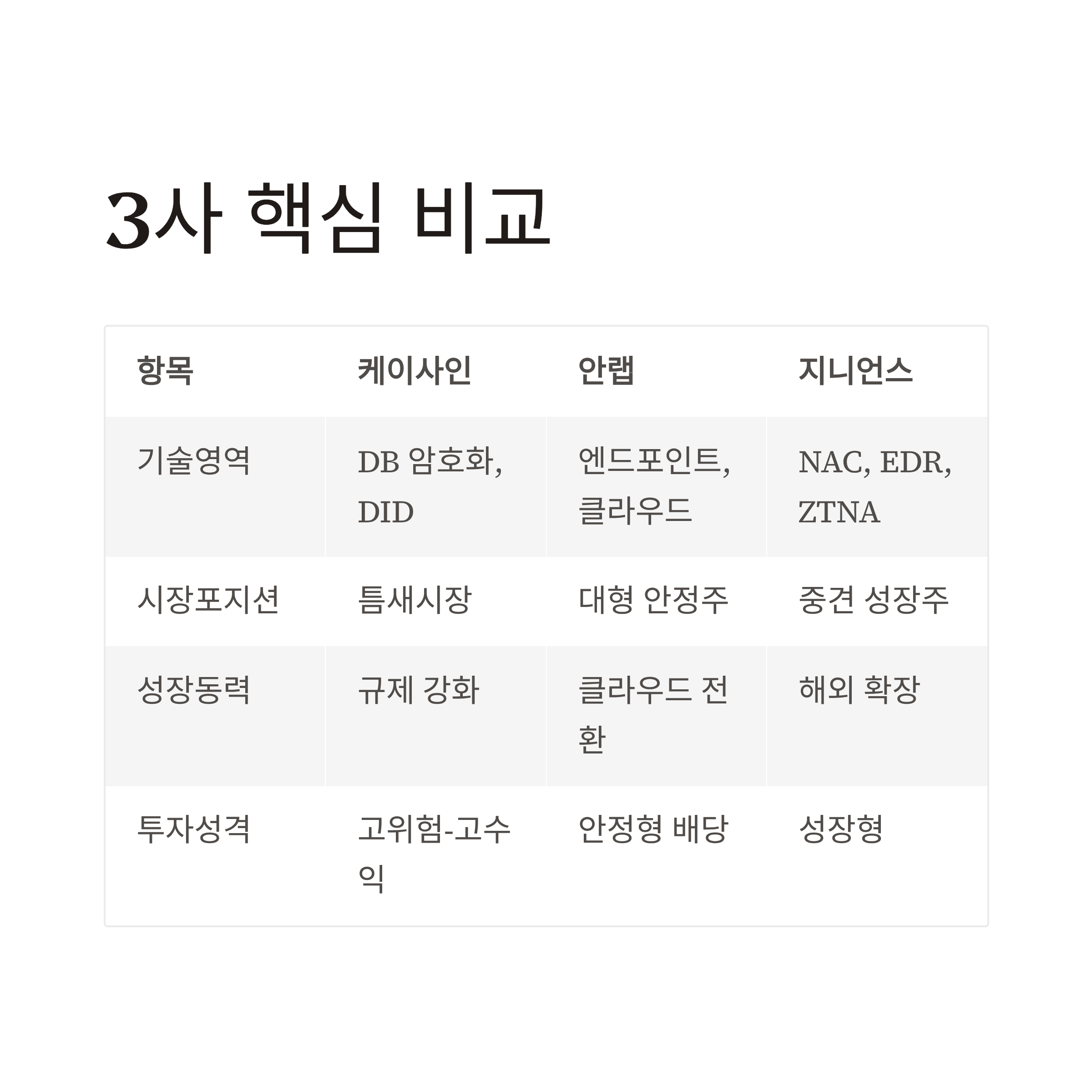 보안 시장은 분명한 성장 산업입니다. 하지만 성장의 방향과 속도는 기업별 기술 포트폴리오에 따라 다르게 나타날 수 있습니다.