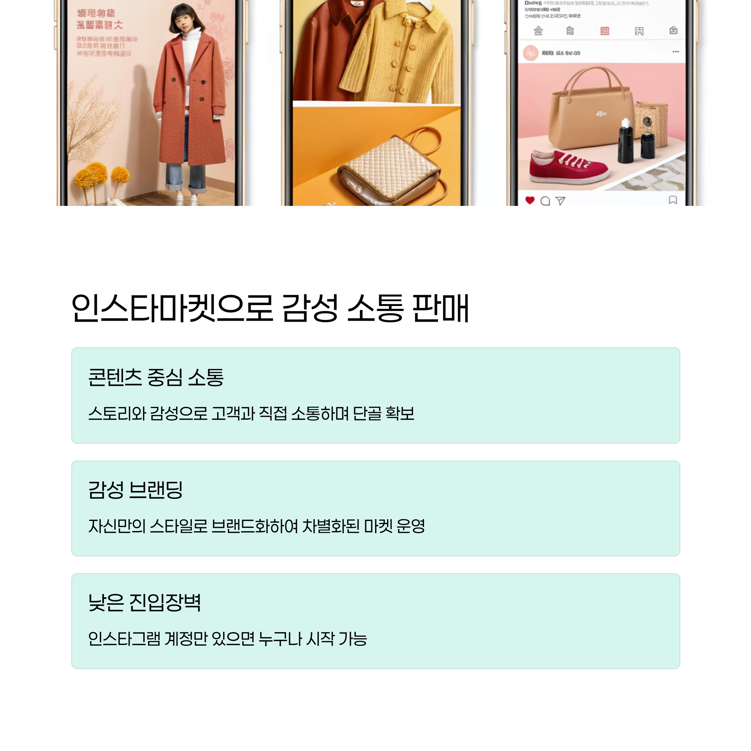 | 인스타그램 마켓 | 감성 소비, 팔로워 기반 소통 | 콘텐츠형 셀러, 취미 공유형 부업 |