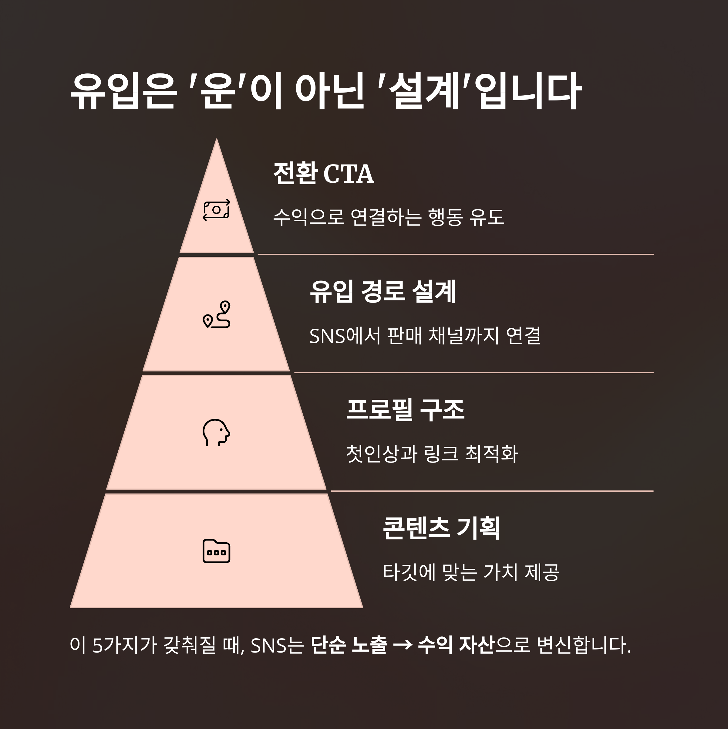 이 5가지가 갖춰질 때, SNS는 단순 노출 → 수익 자산으로 변신합니다.