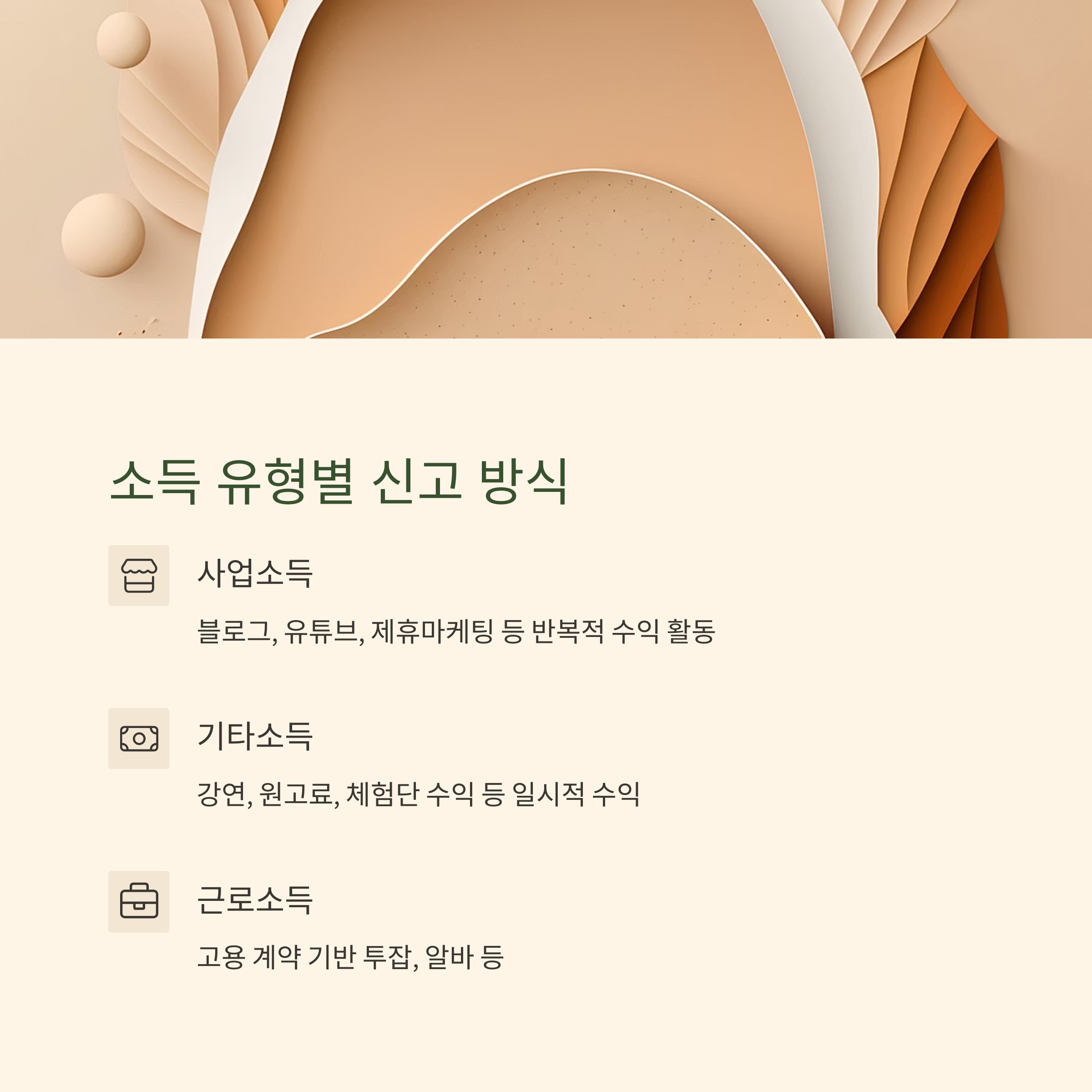 부업 소득이라도 어떤 종류로 분류되느냐에 따라 신고 방식과 절세 전략이 달라집니다.