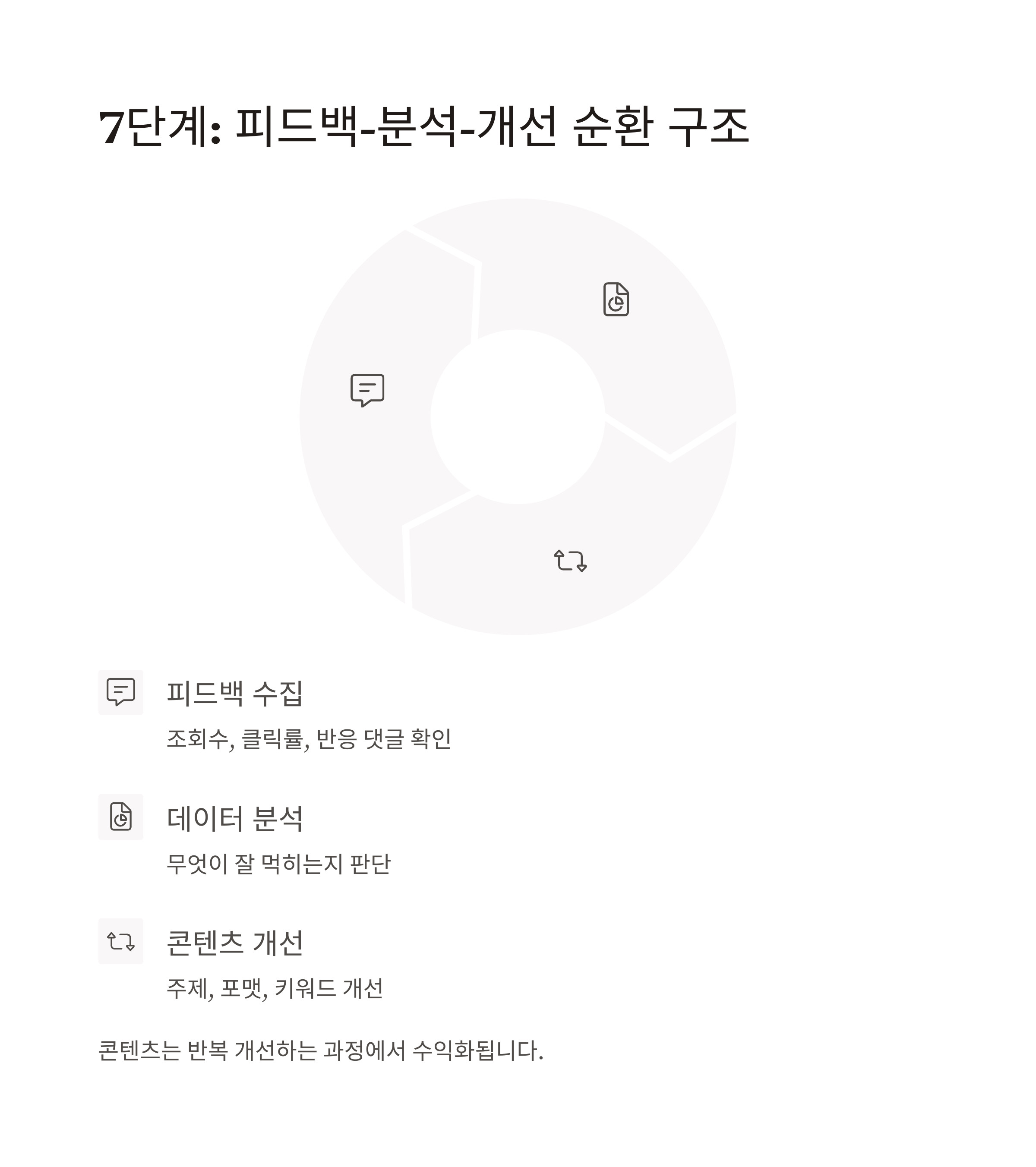 무엇이 잘 먹히는지 판단한 후 주제, 포맷, 키워드를 개선하는 구조가 필요합니다.