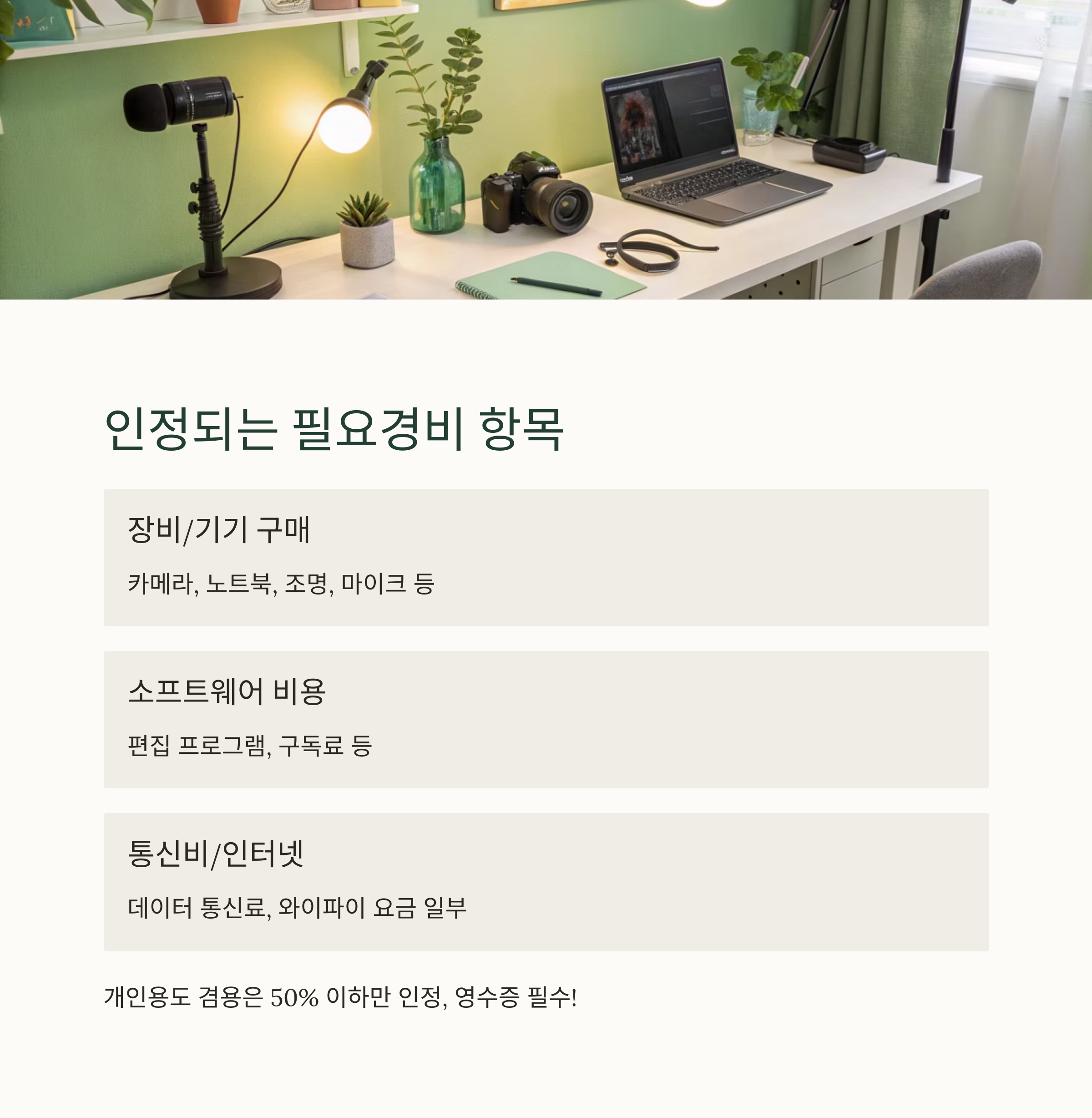 | 장비/기기 구매 비용 | 카메라, 노트북, 조명, 마이크 등 |
