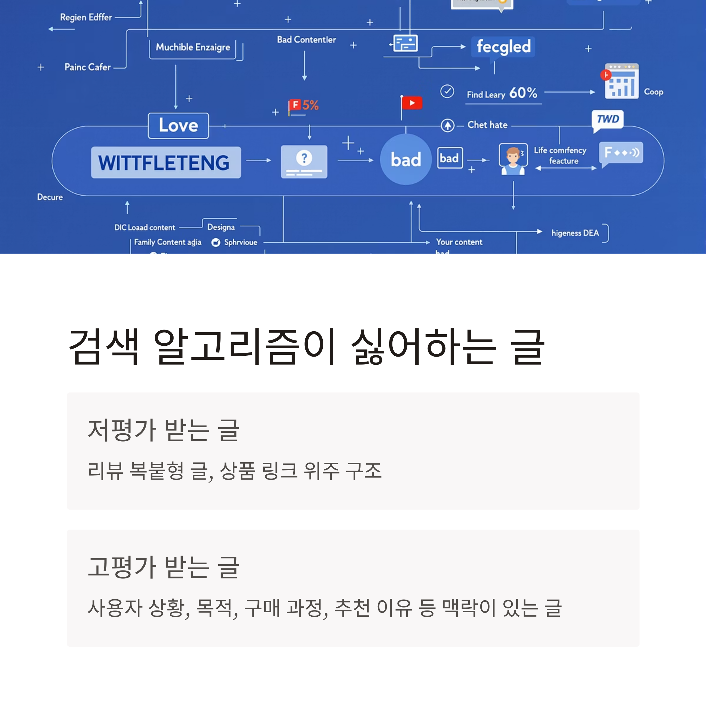 반면, 실제 사용자의 상황, 목적, 구매 과정, 후회 또는 추천 이유 등 맥락을 가진 글은 고평가합니다.