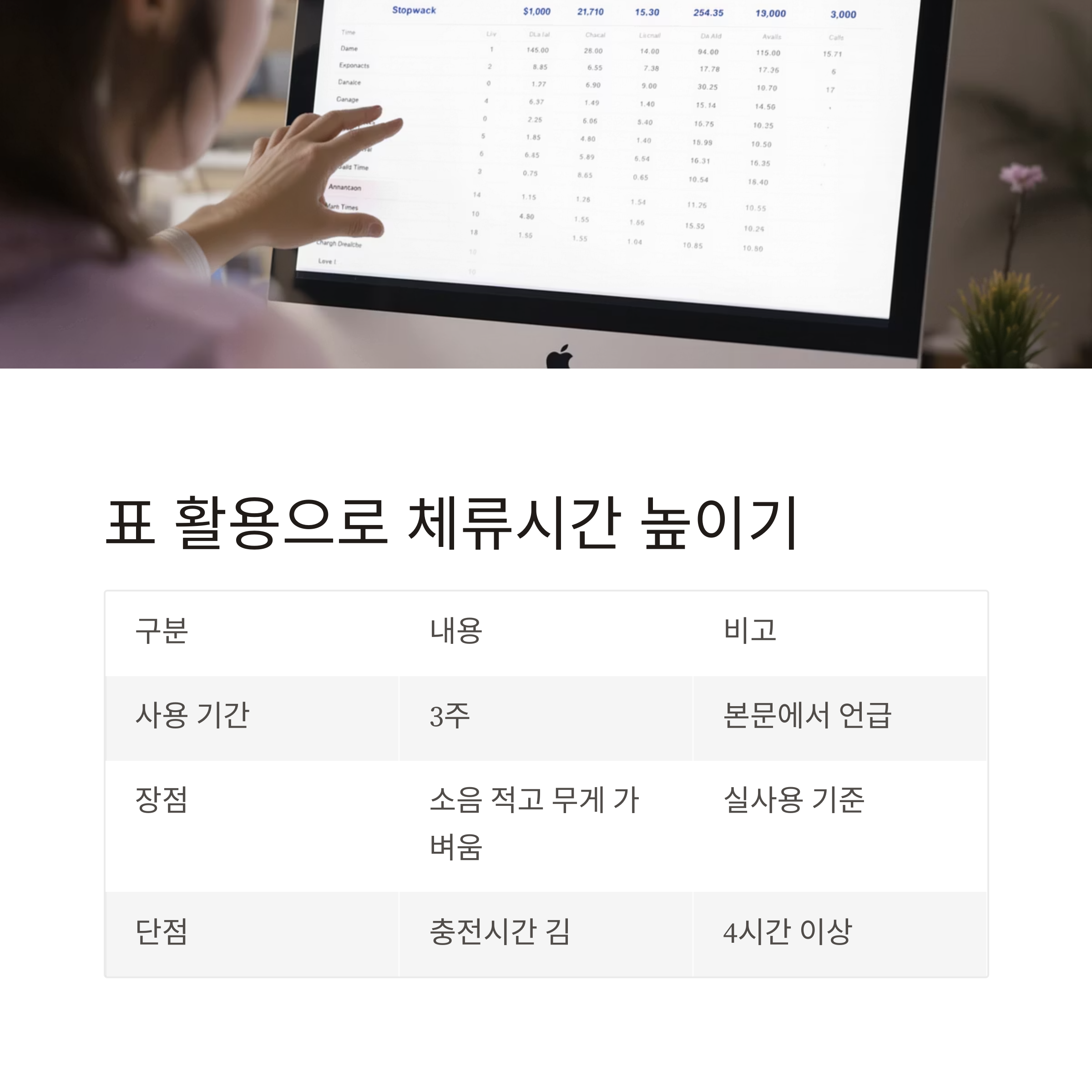 표 구성은 눈에 띄기 때문에, 사용자 체류시간 증가와 스크롤 유지에 효과적입니다.