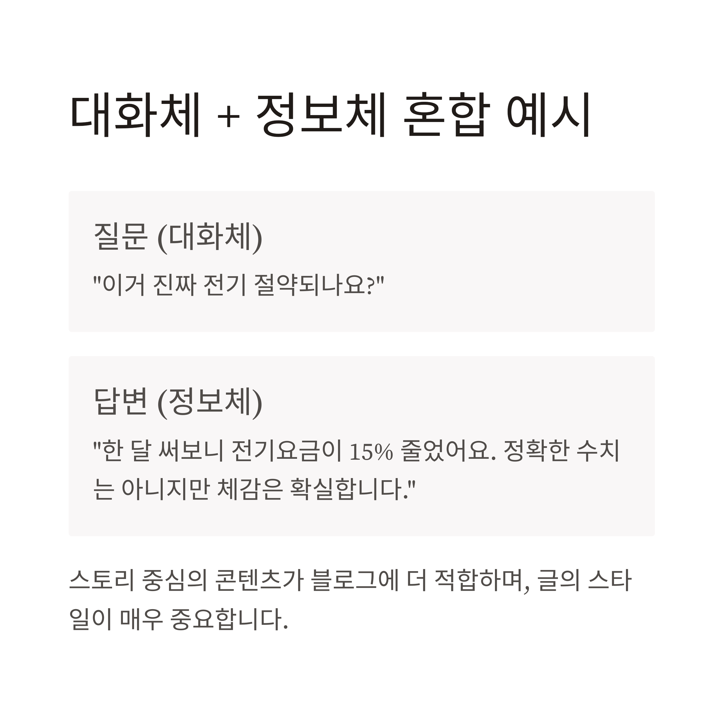 다양한 문체 섞기: 대화체 + 정보체 혼합