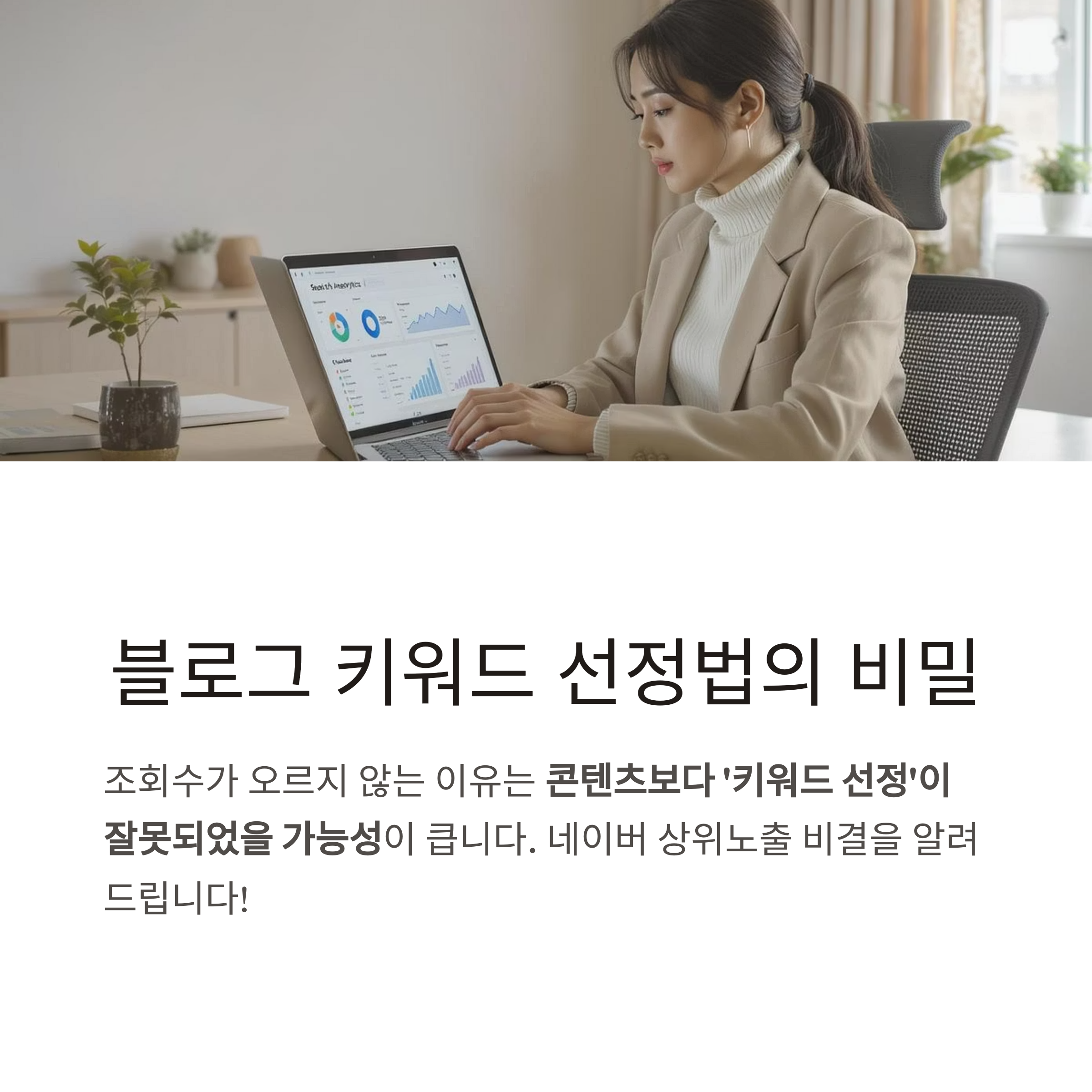 그보다 사람들이 실제로 검색하는 단어(키워드)를 정확하게 노리는 것이 핵심입니다.