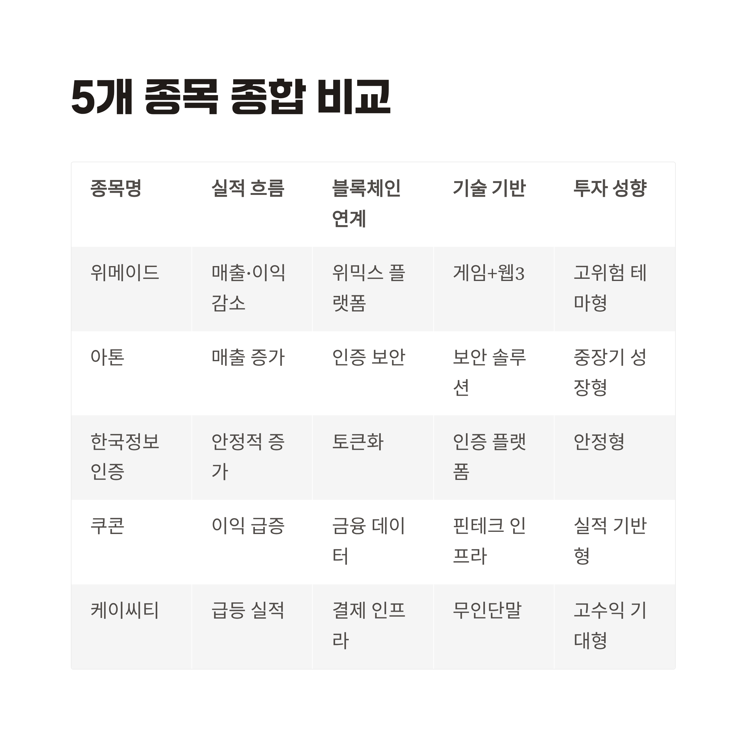 종목명 실적 개선 흐름 블록체인 연계성 기술 기반 투자 성향 추천