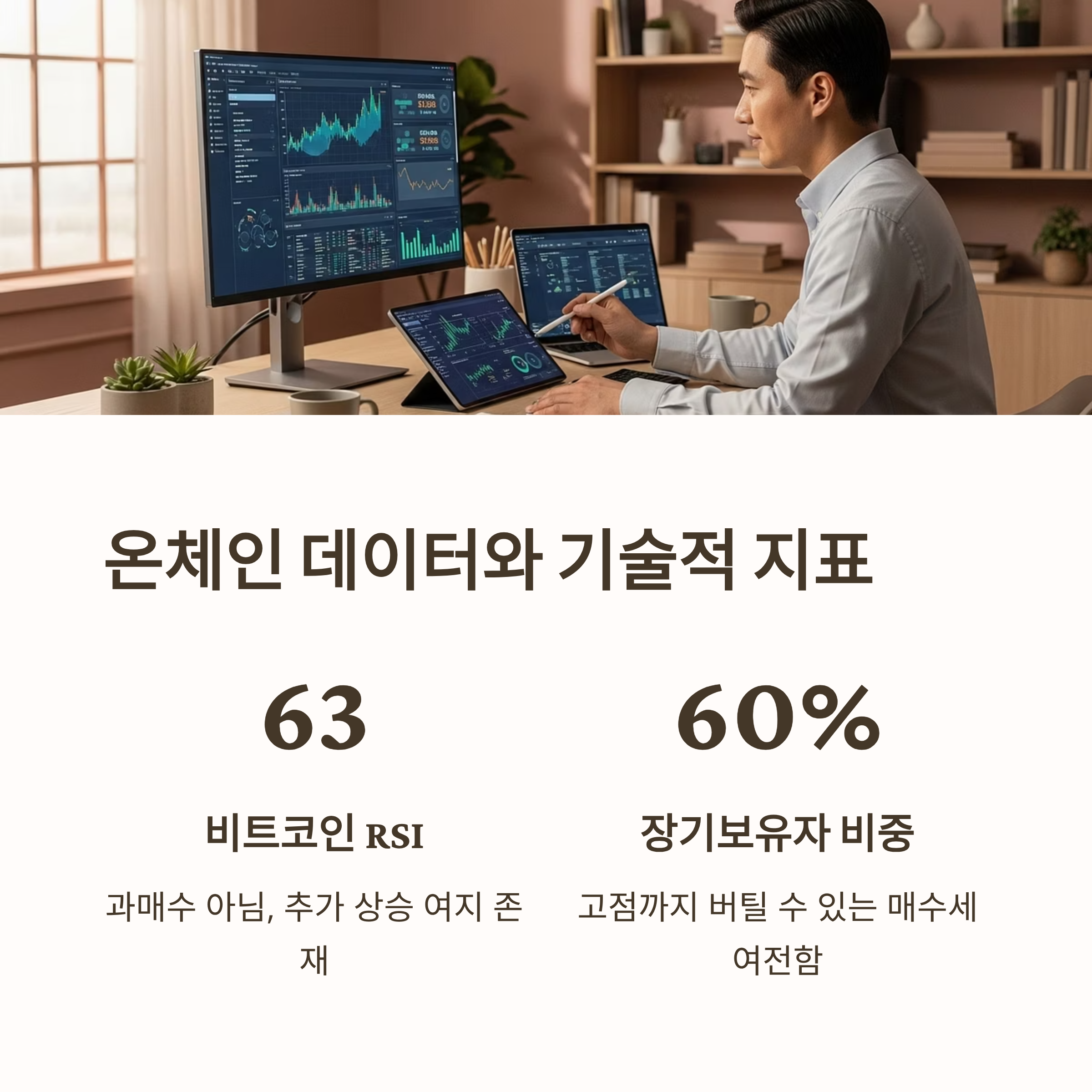 | RSI (BTC) | 63 | 과매수 아님, 추가 상승 여지 존재 |