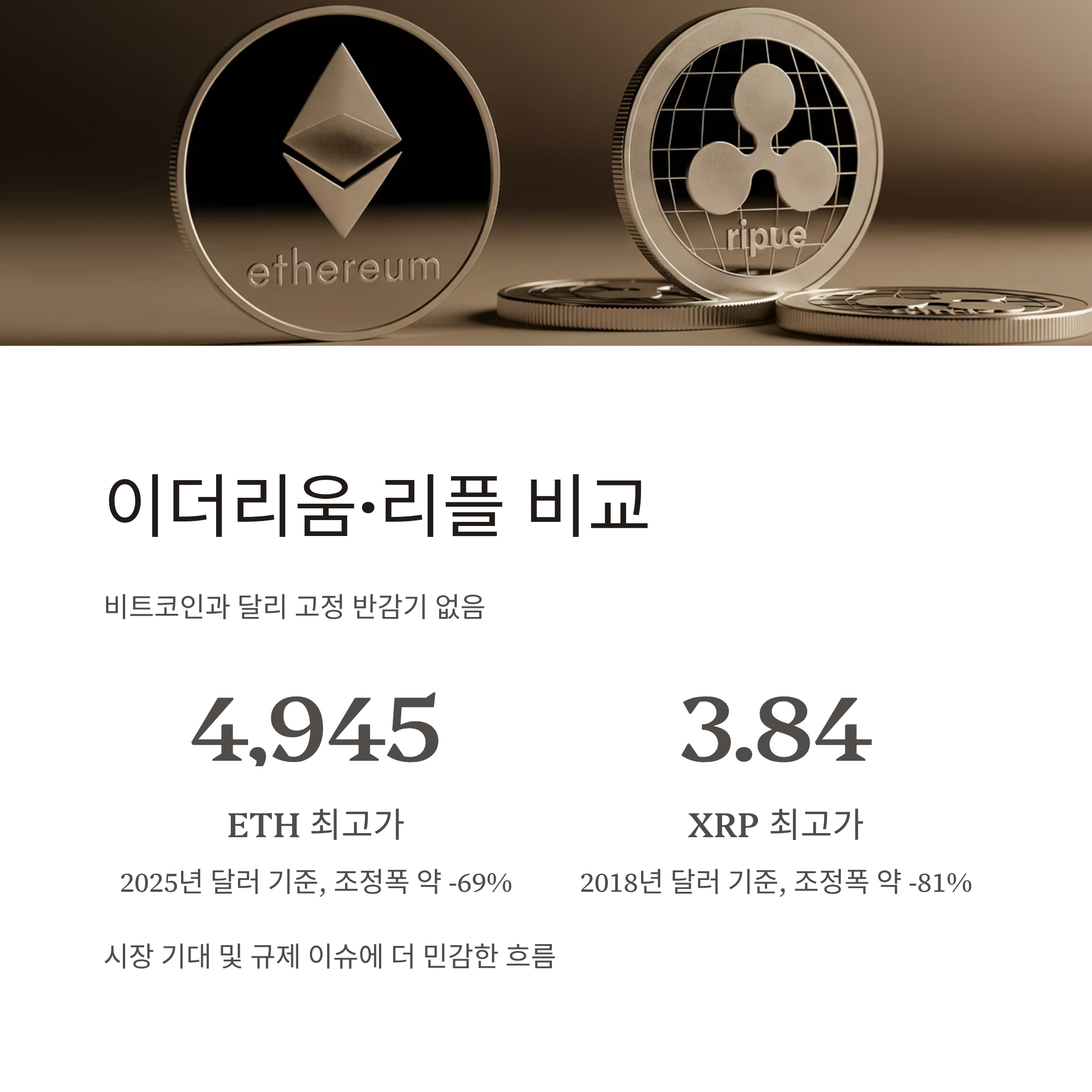 따라서 이들 코인은 “반감기 이후 12개월”이라는 분석 틀보다는, 시장 기대 및 규제 이슈에 더 민감한 모습을 보입니다.