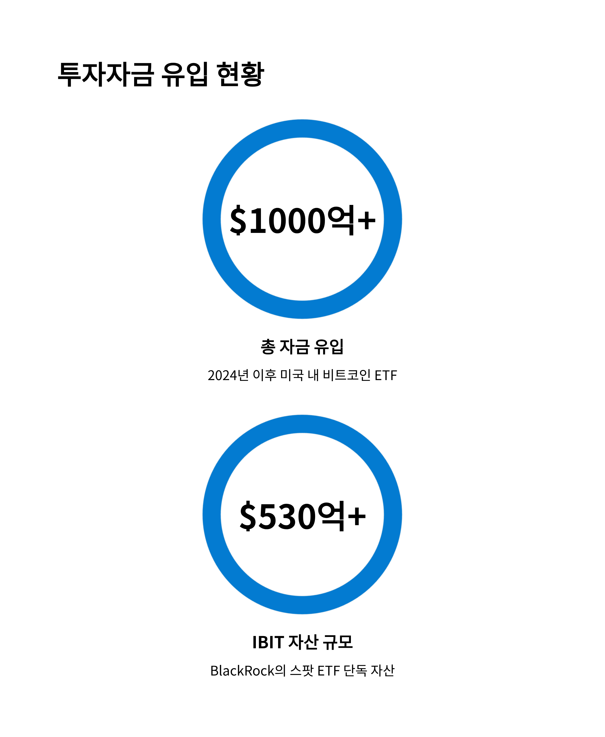 - 그중 BlackRock의 IBIT 단독 자산 규모는 $530억 돌파