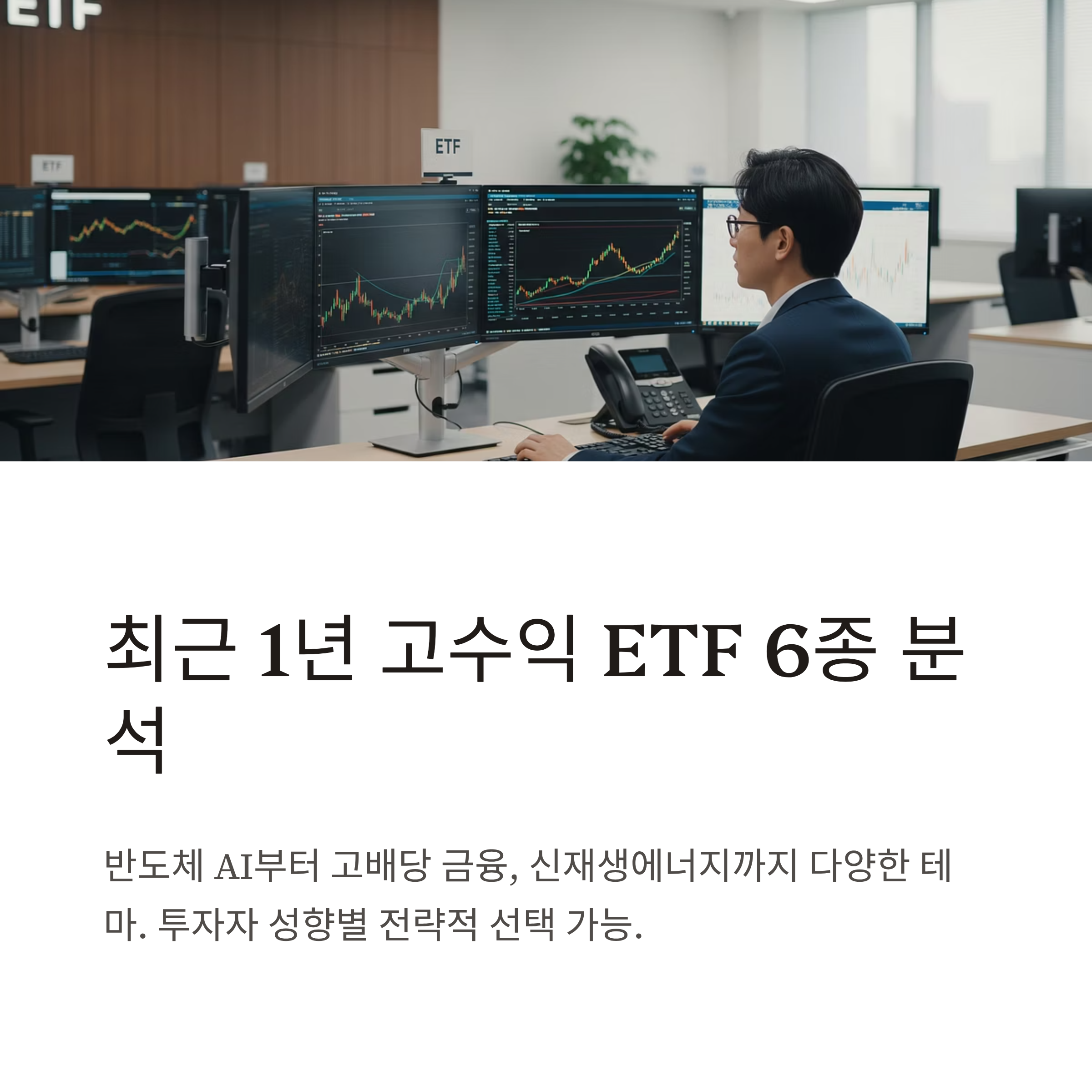 최근 1년간 ETF 시장에서 높은 수익률을 기록하며 주목받고 있는 삼성자산운용의 KODEX 브랜드 ETF 중 상위 6종을 선별하여 비교 분석해봤습니다. 반도체와 AI부터 고배당 금융, 신재생에너지, 지수추종형까지 다양한 테마를 담고 있어 투자자 성향에 따라 전략적 선택이 가능합니다. 각 종목의 최근 성과와 향후 전망, 그리고 투자 전 고려해야 할 유의사항까지 함께 살펴보겠습니다.