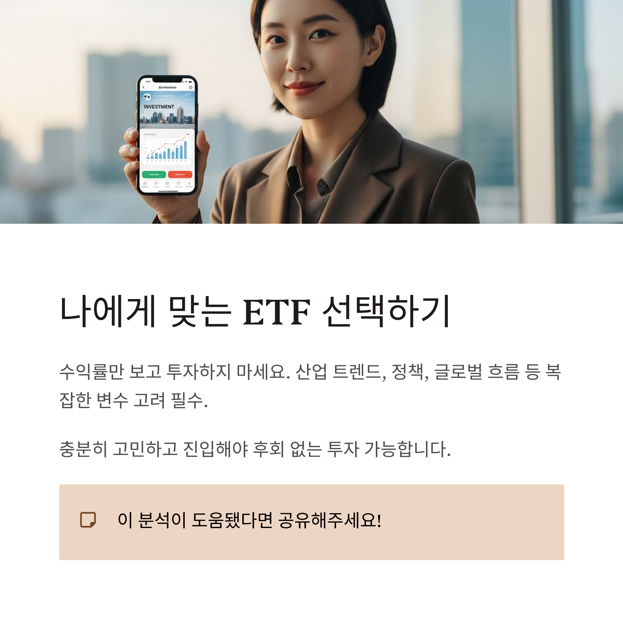 ETF 투자는 단순한 지표 투자처럼 보이지만, 그 안에는 산업 트렌드, 정부 정책, 글로벌 금융 흐름 등 복잡한 변수들이 작용합니다.