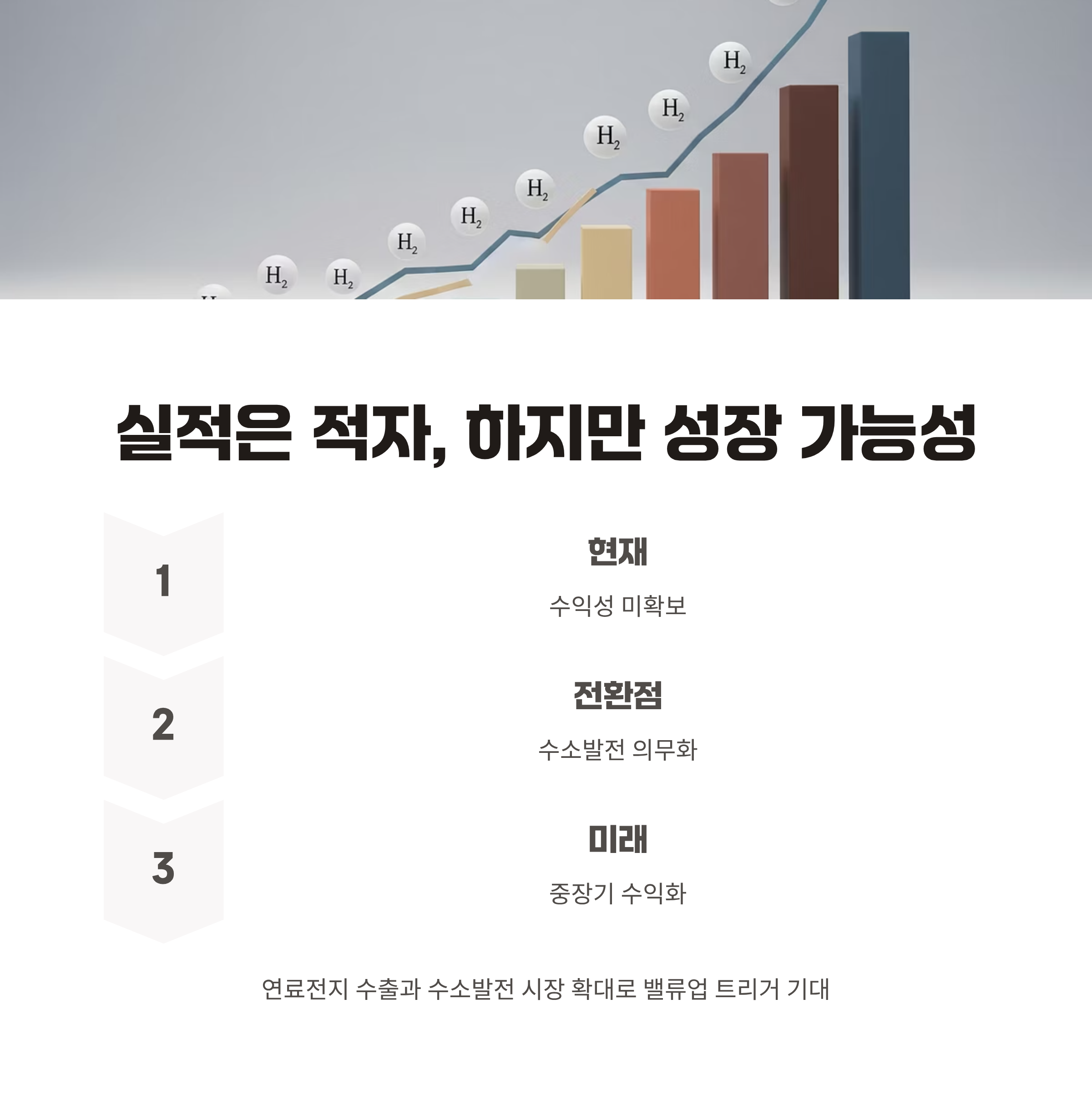 | 리스크 요소 | 수소 매출 비중 낮음, 인프라 구축 지연 가능성 |