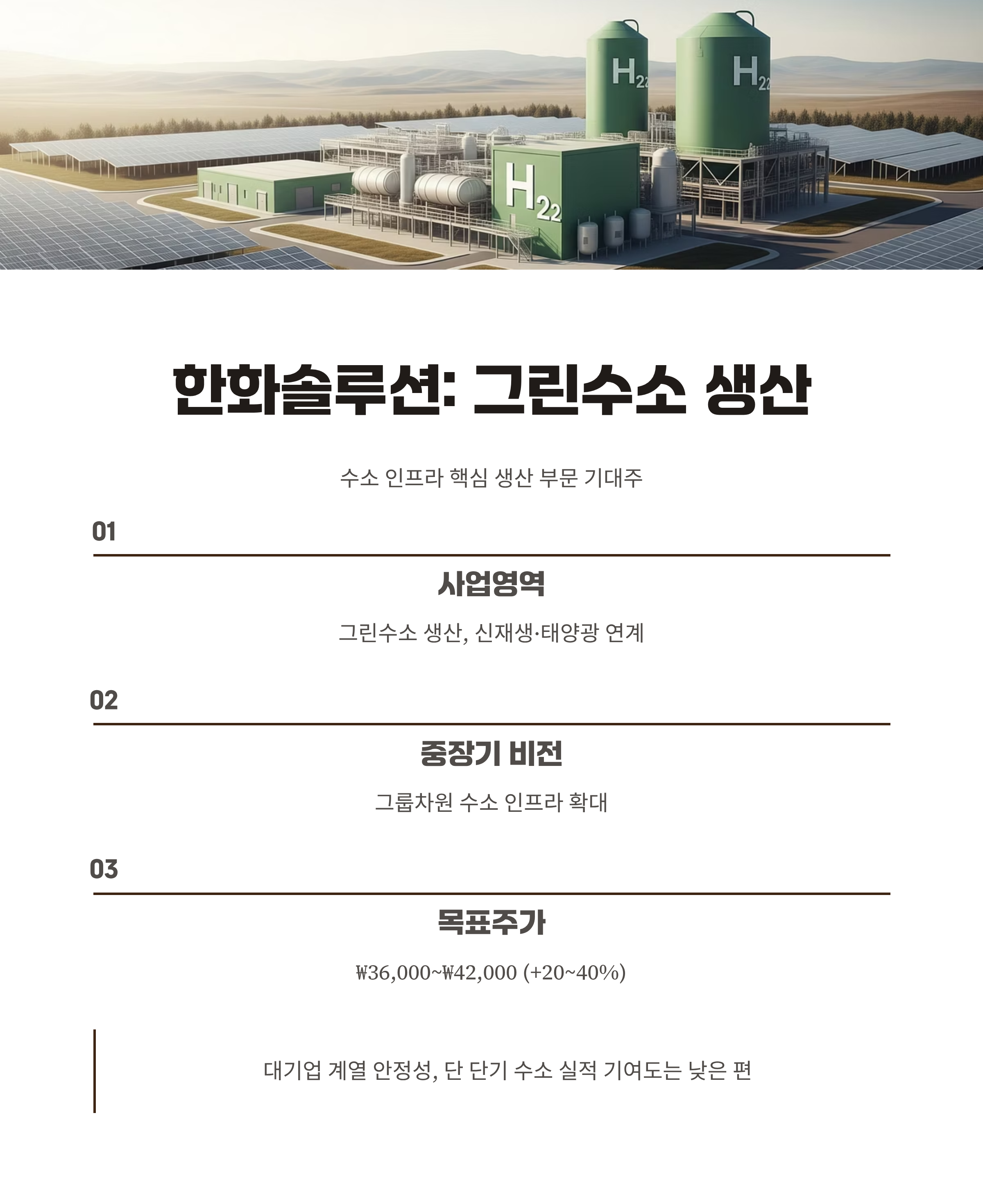 | 한화솔루션 | 수소 생산 | 그린수소, 태양광 연계 플랫폼 구축 | +20% ~ +40% |