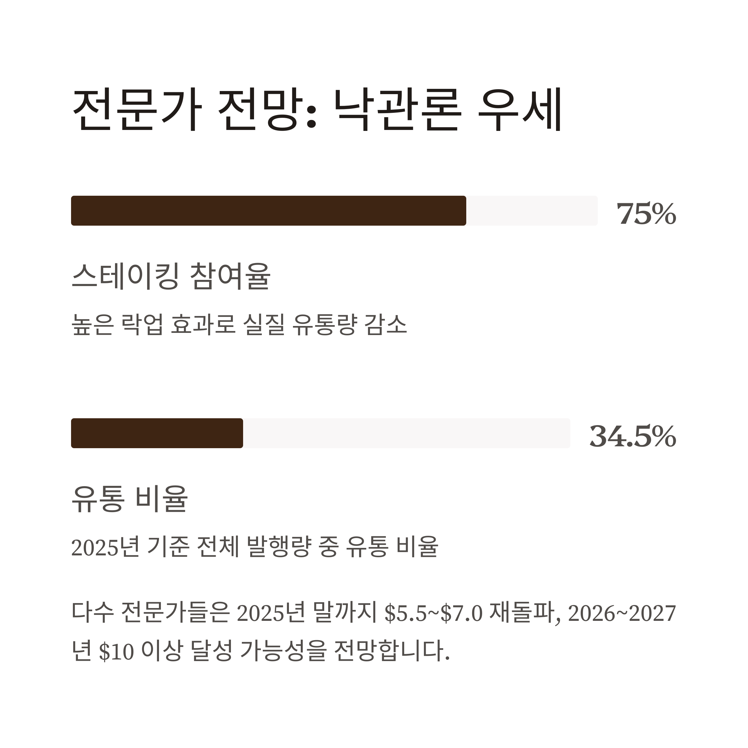 | 스테이킹률 | 75% 이상 참여 (락업 효과) |