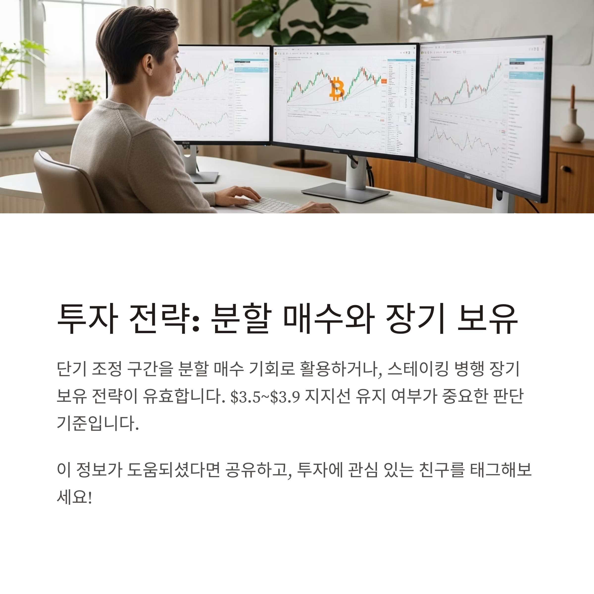 지금 진입을 고려할 경우 $3.5~$3.9 지지선 유지 여부 확인이 중요하며,