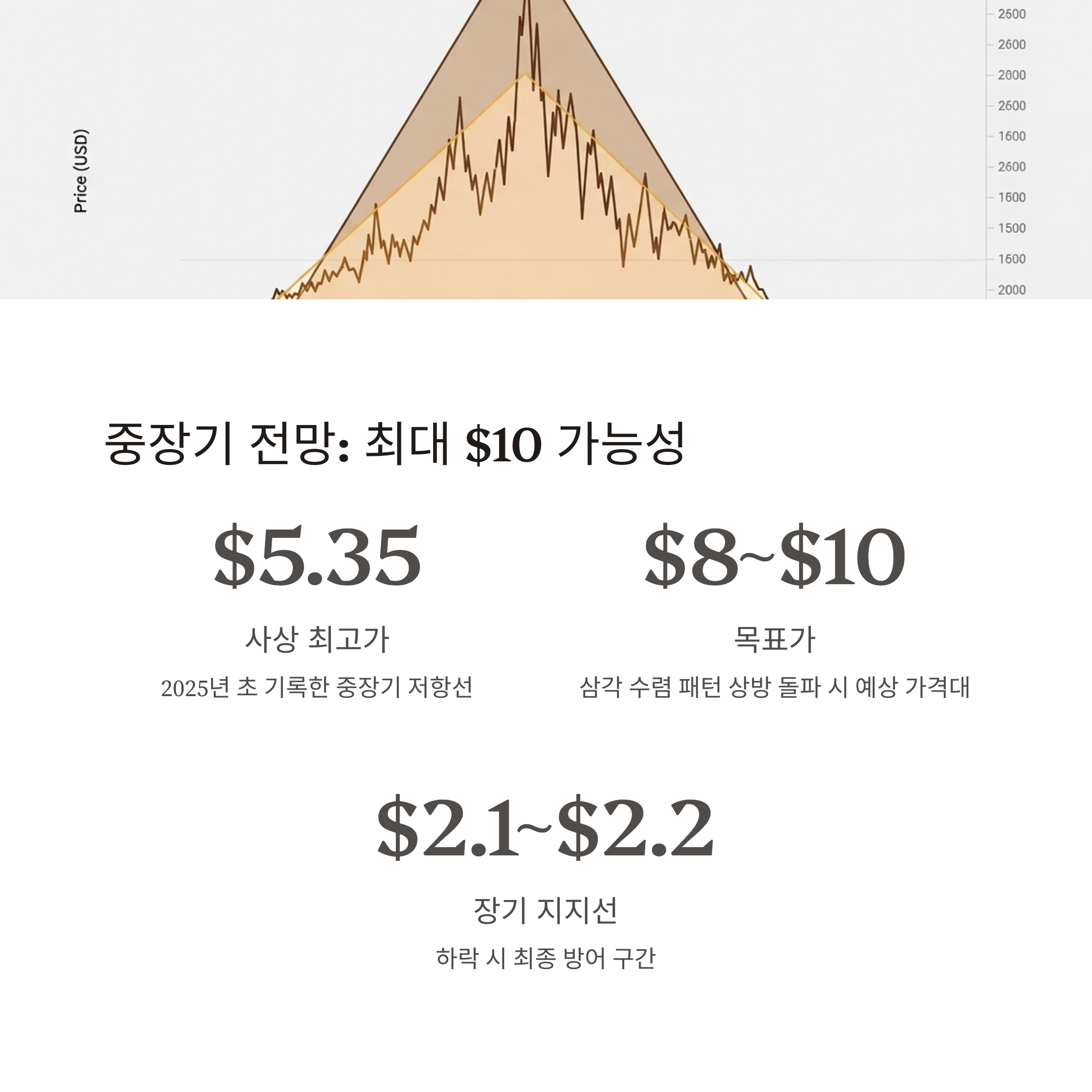중장기 전망: 수렴 패턴 상방 돌파 시 최대 $10 가능