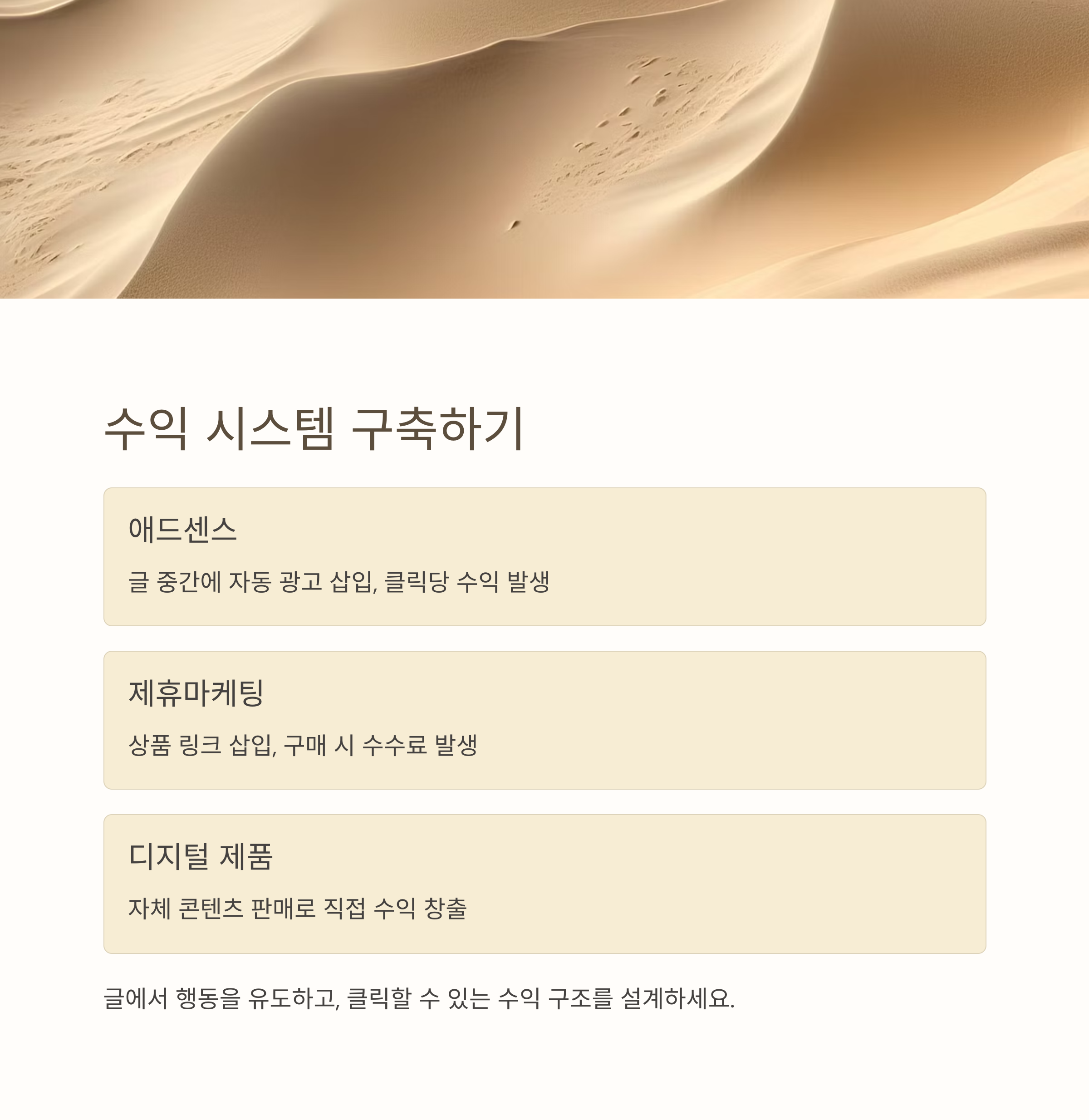 글에서 행동을 유도하고, 클릭할 수 있는 수익 구조를 반드시 설계해야 합니다.