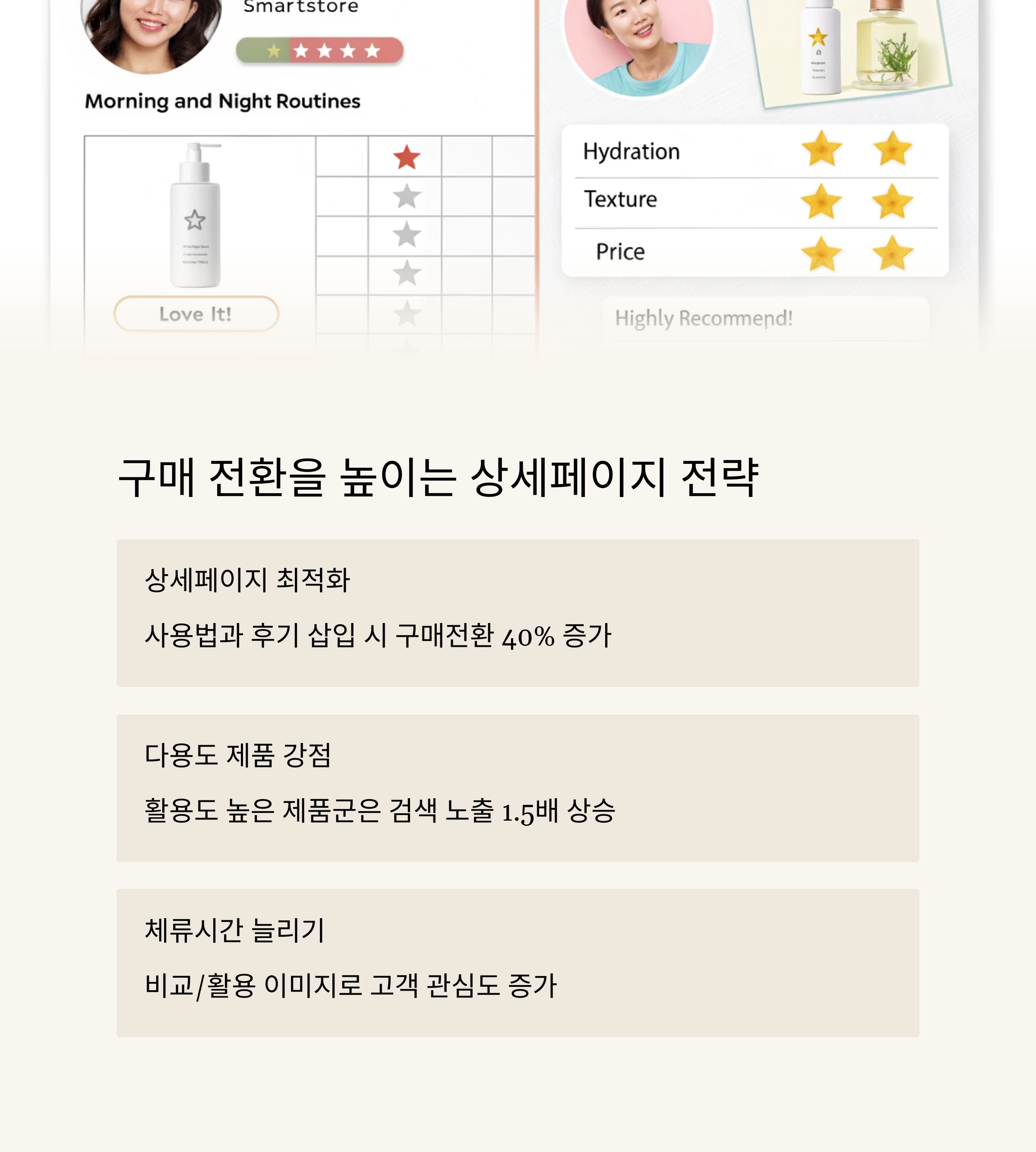 | 상세페이지 | 혜택 강조, 시각적 정보 정리, 후기 안내 포함 | 클릭→전환으로 이어져 노출 유지 |
