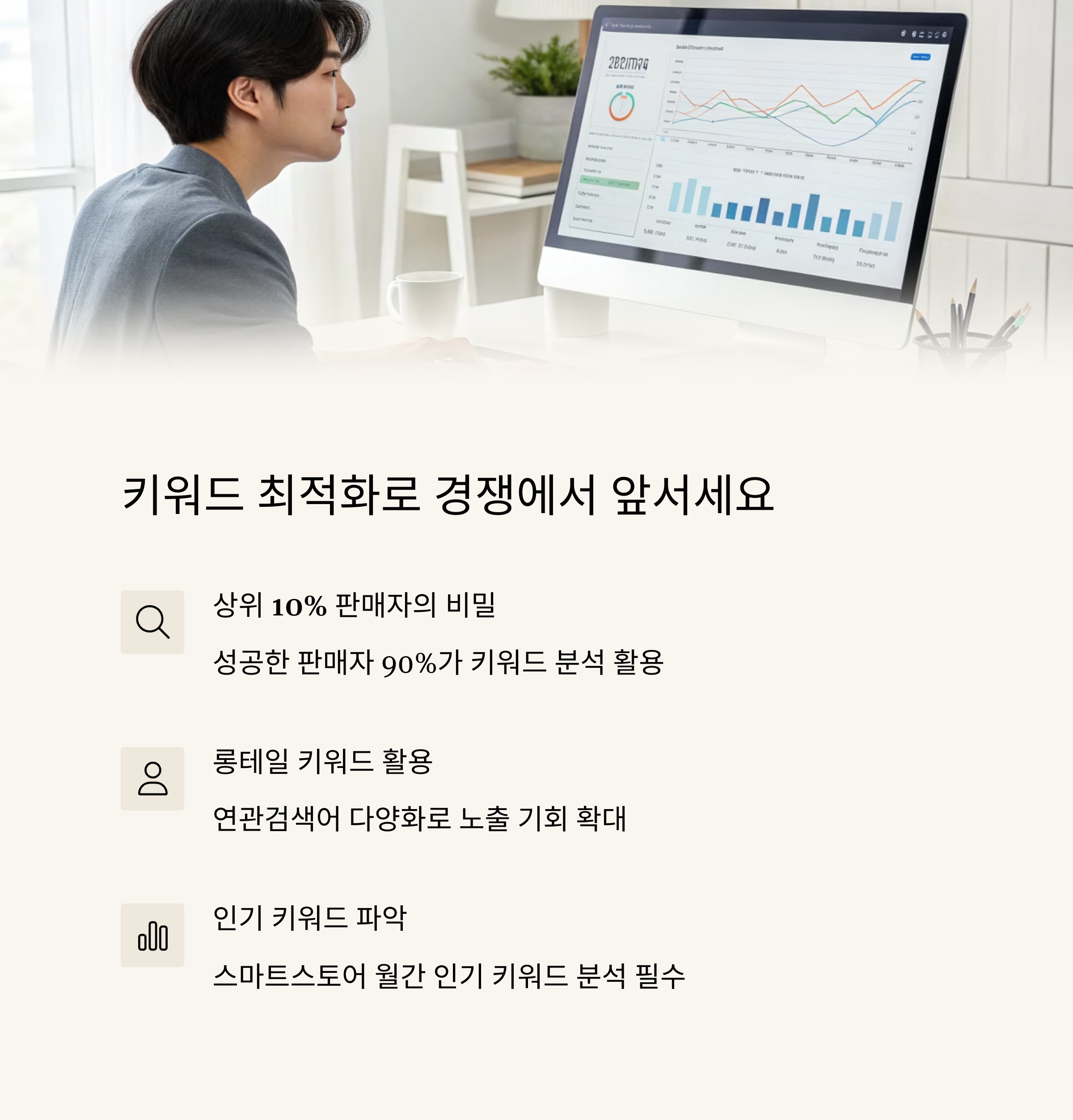 | 키워드 | 자주 검색되는 단어 중심의 상품명, 태그 구성 | 검색 결과 상위 진입 |