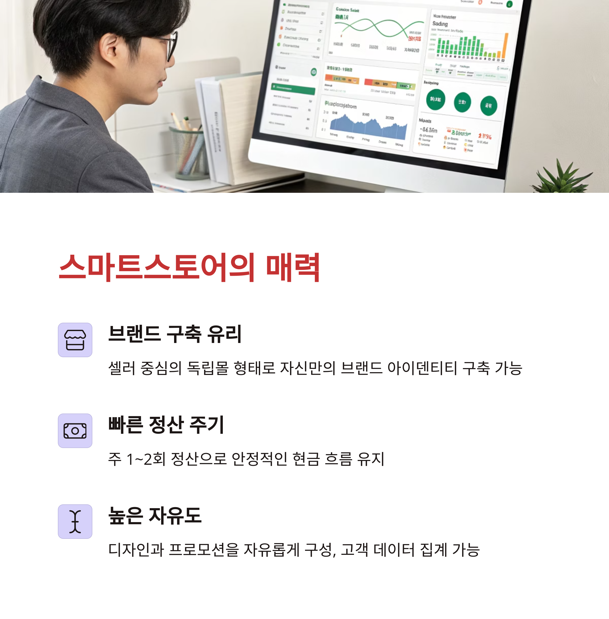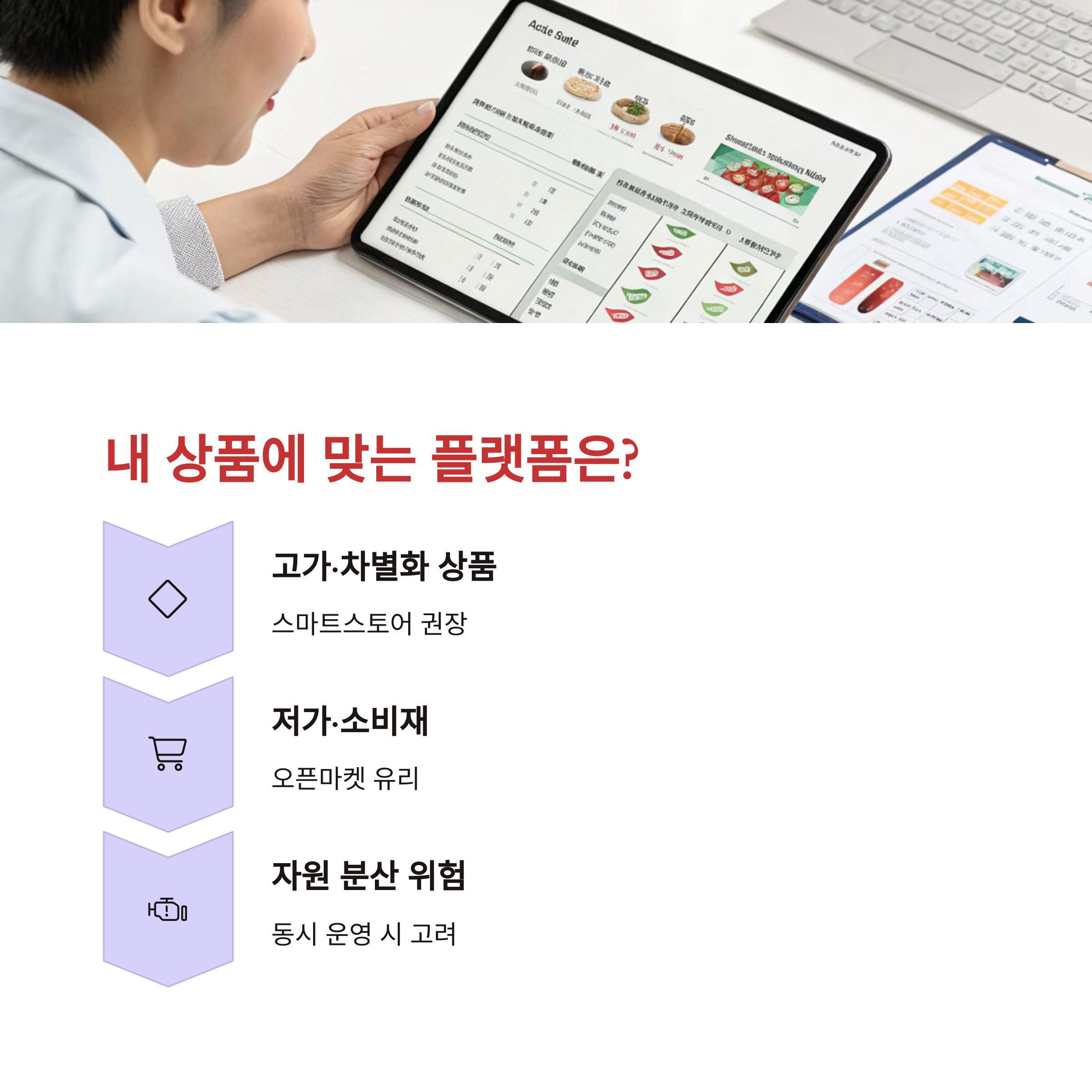 | 상세페이지 자유도 높음 | 이벤트 활용 가능, 판매 속도 빠름 | 운영 리소스, 사업 모델, 수익 구조 분석 |