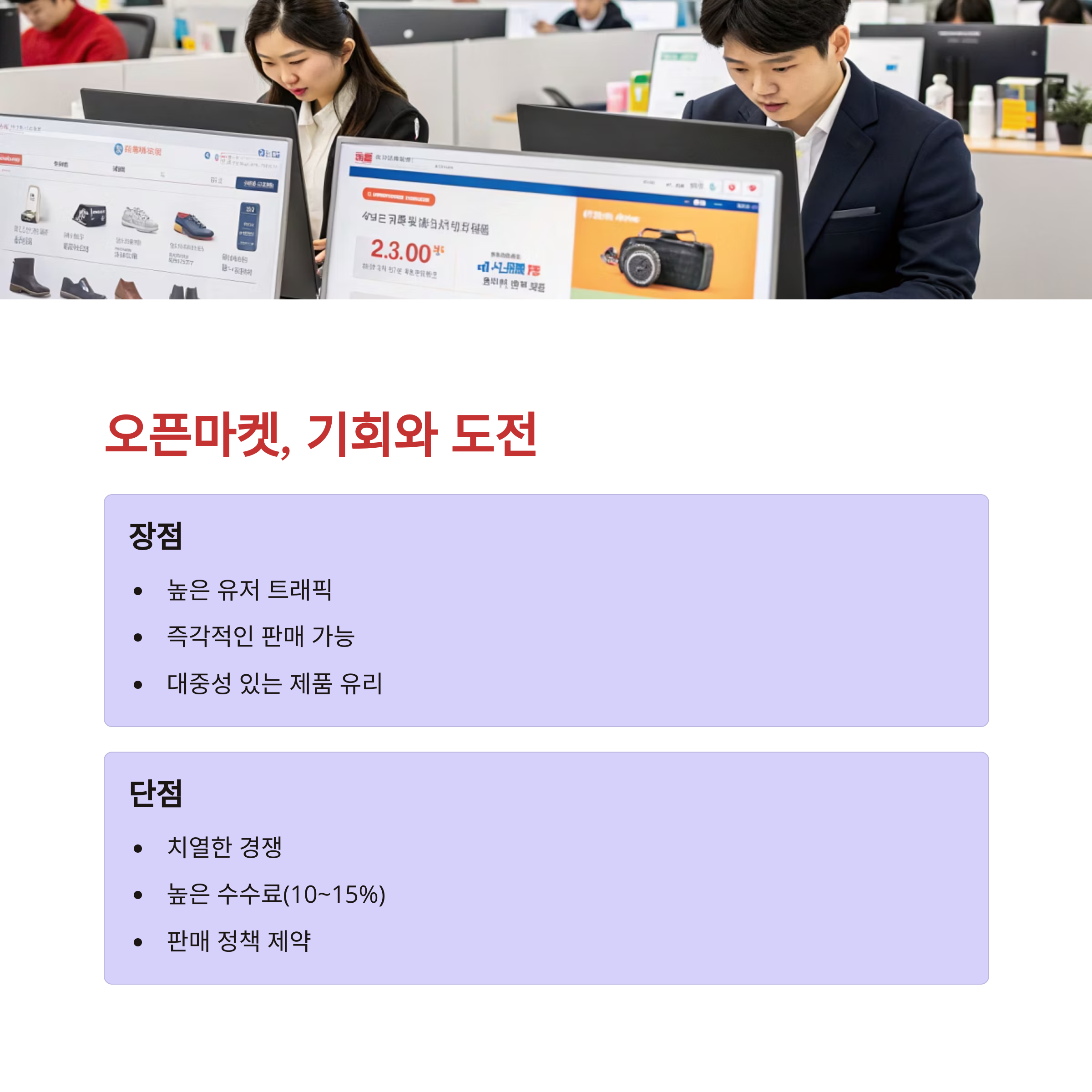 | 오픈마켓이란? | 쿠팡, 11번가, G마켓 등 여러 판매자가 함께 활동하는 마켓입니다. |