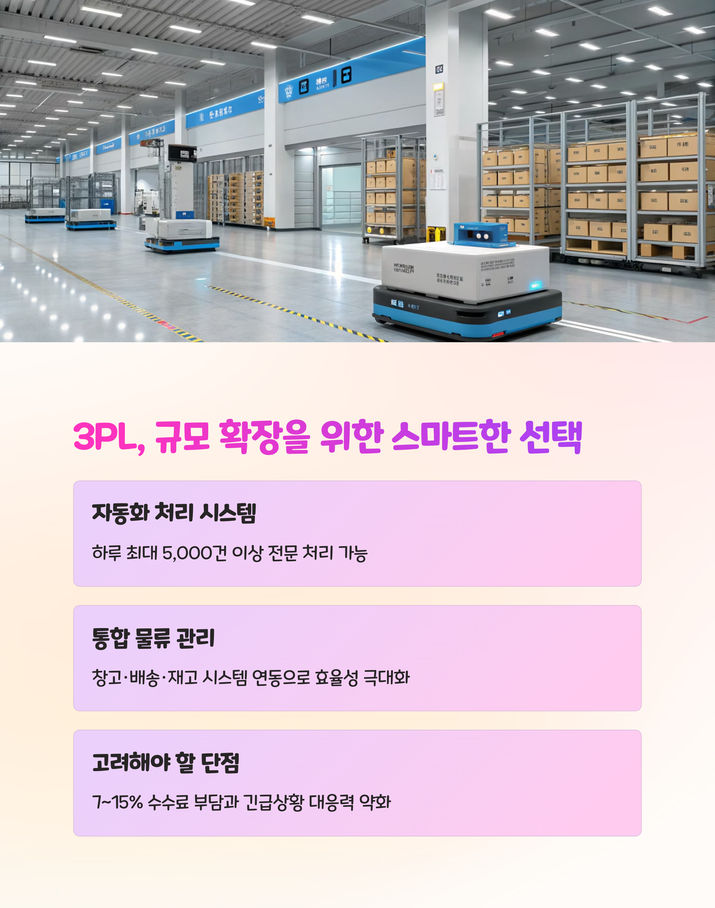 하루 20건 이상 출고되거나, 포장·보관에 시간 부담이 커졌다면 3PL 전환을 고려해볼 시점입니다.