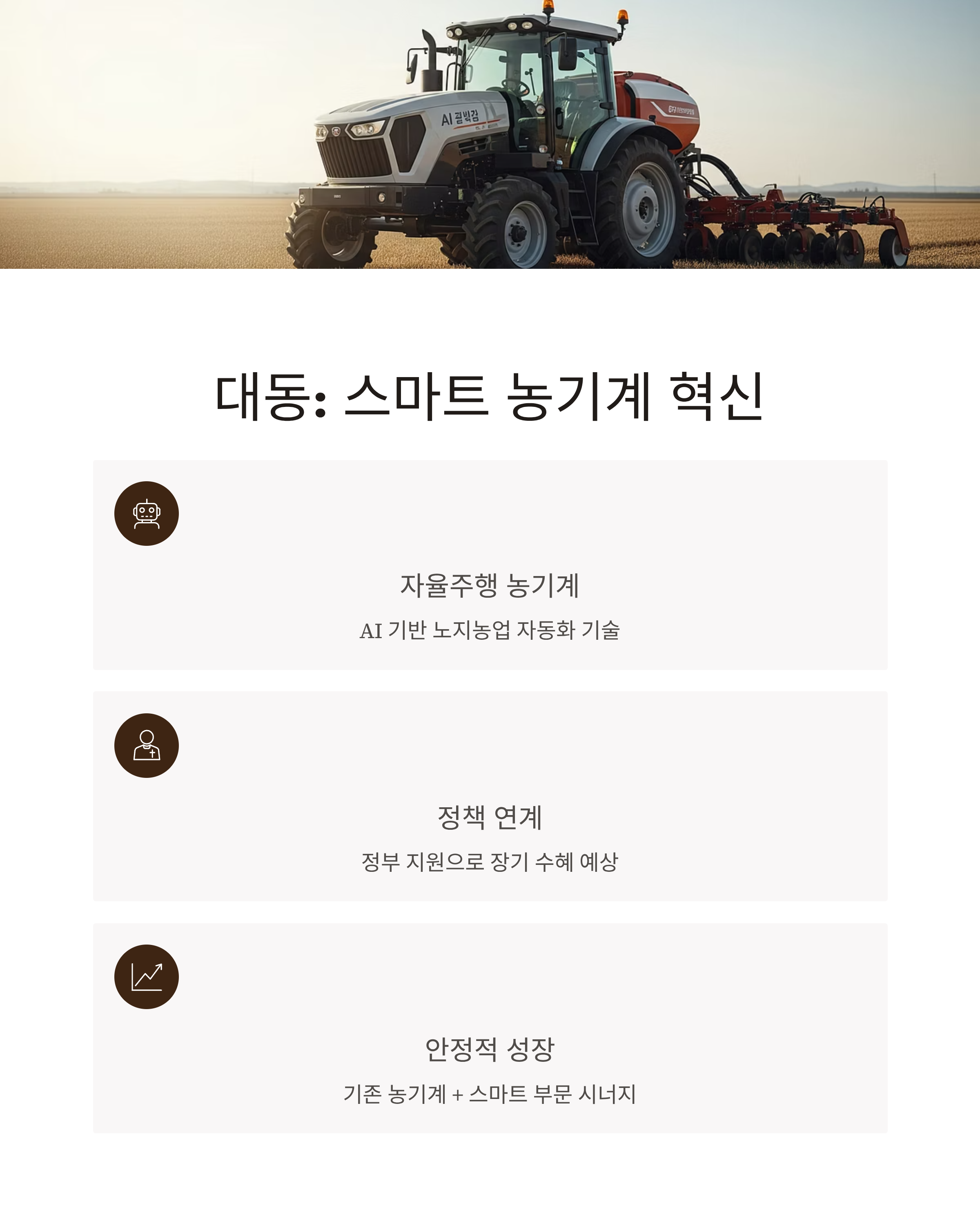 | 대동 | +25% | +45% | 스마트 농기계 보급률 상승 + 정책 수혜 |