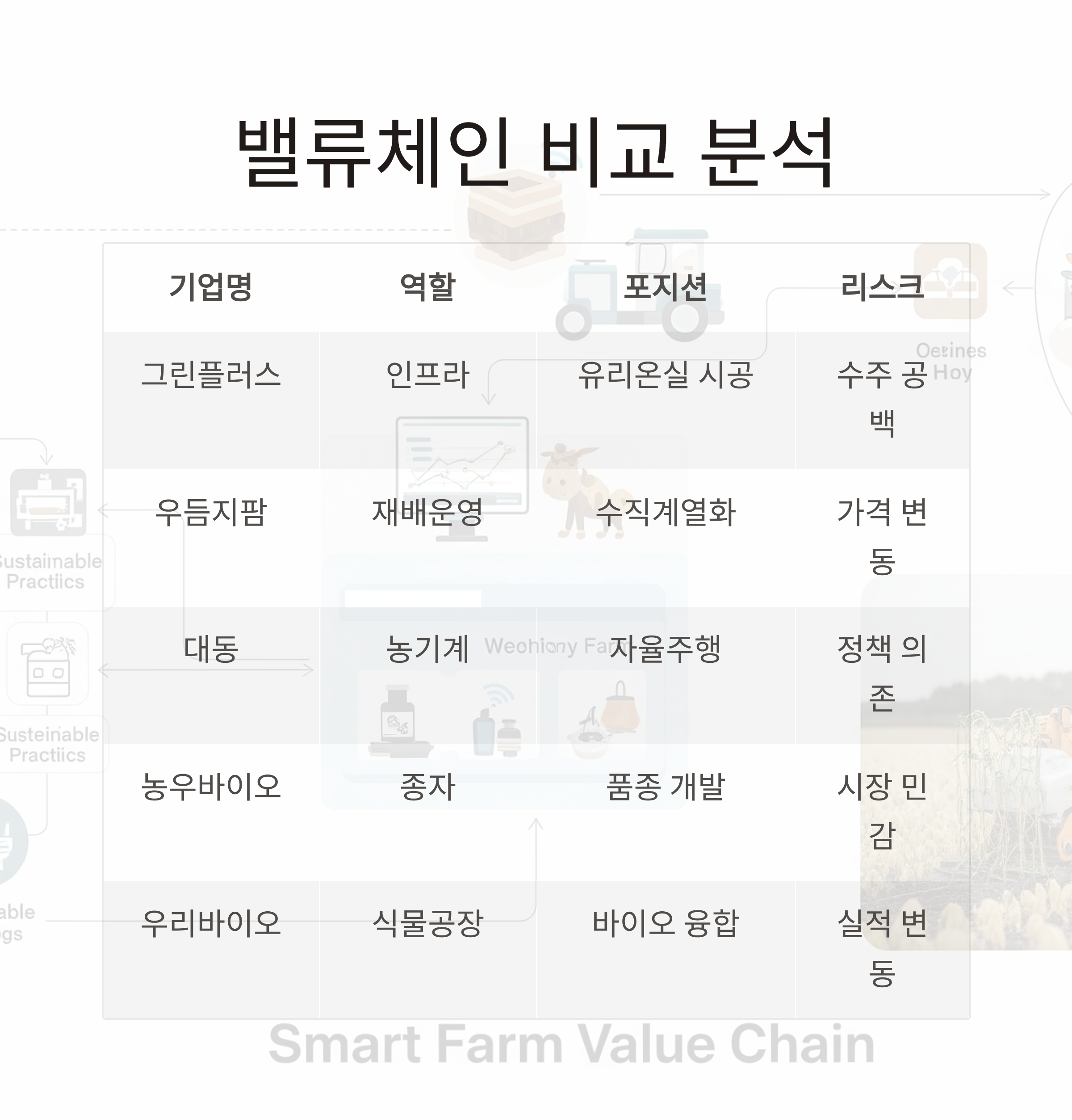 기업명 역할 구분 스마트팜 포지션 리스크 요인