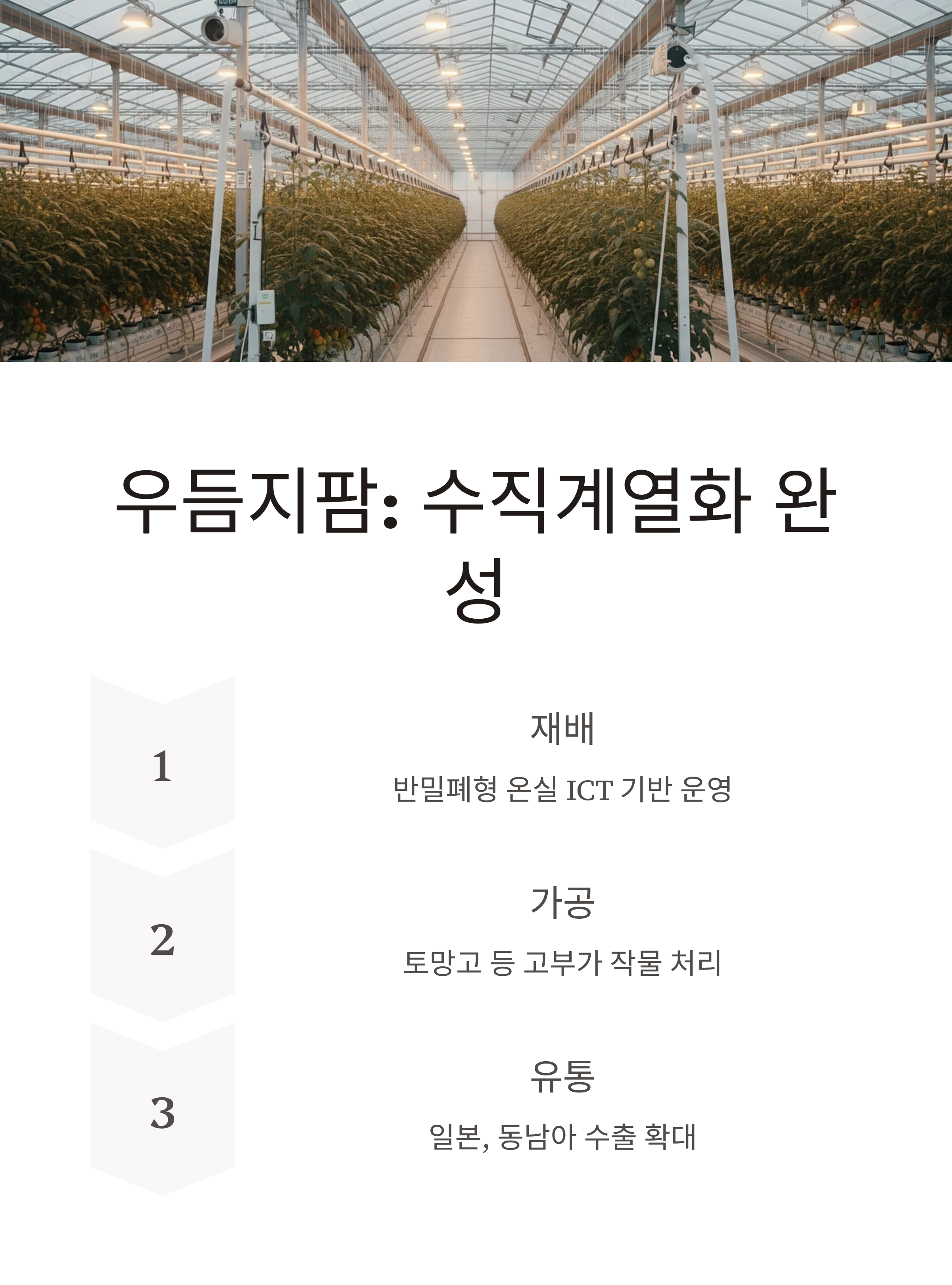 | 우듬지팜 | +30% | +70~80% | 농산물 가격 안정 + 온실 증설 + 수출 성과 실현 |