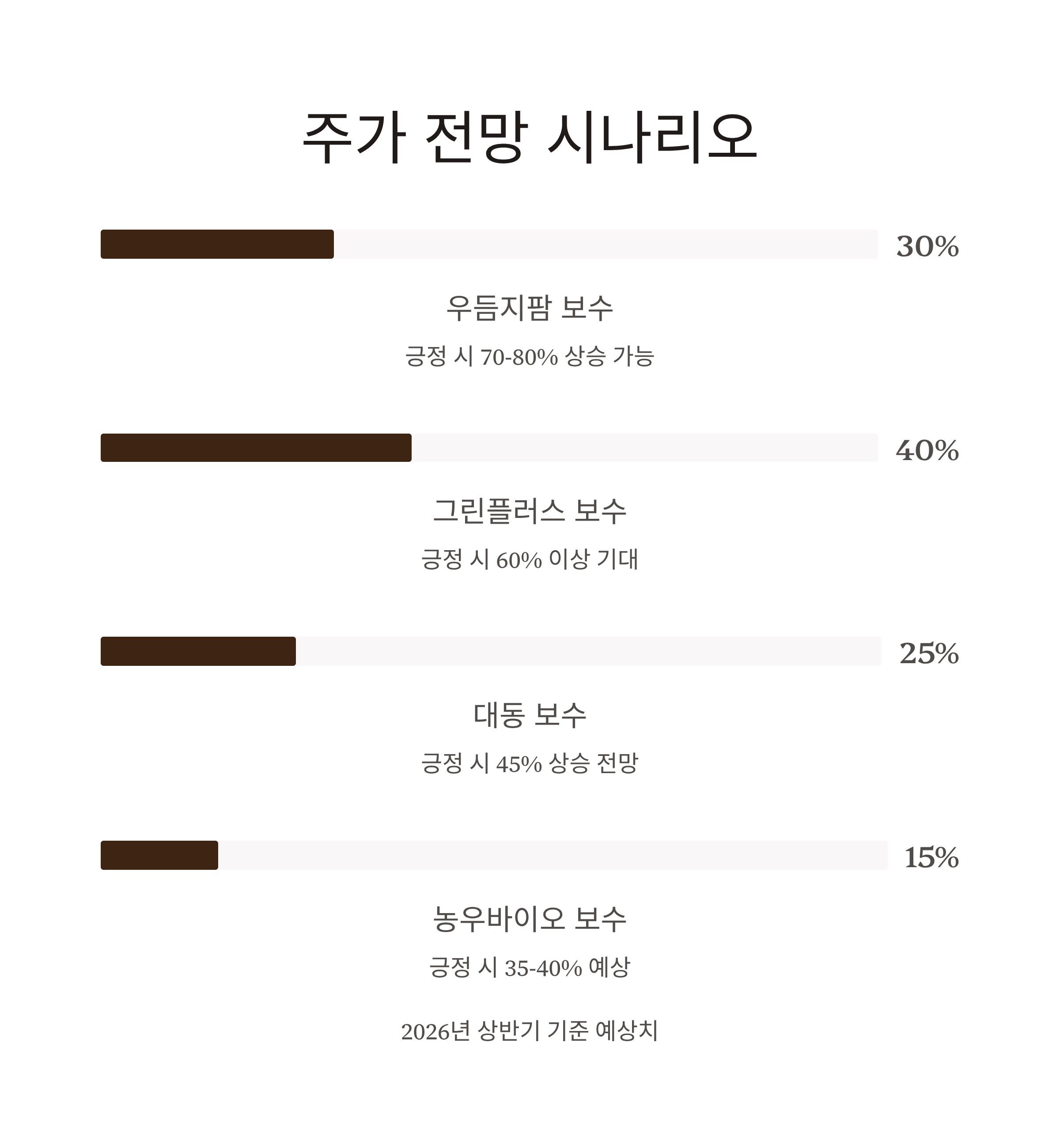 | 농우바이오 | +15% | +35~40% | 종자 매출 증가 + 수출 확대 + 종자 수요 고정화 |