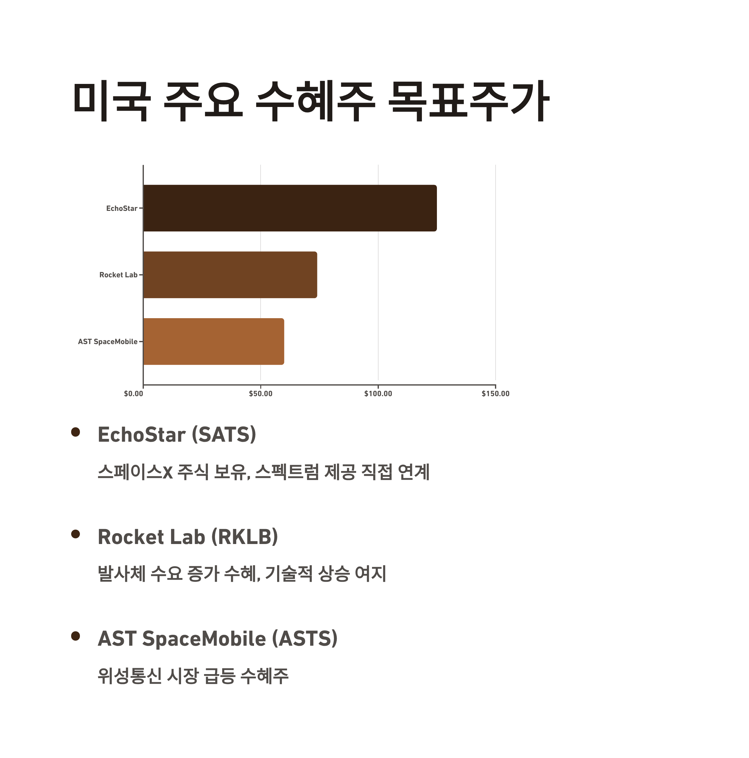 | EchoStar | SATS | $110 ~ $125 | SpaceX 주식 보유, 스펙트럼 제공 직접 연계 |