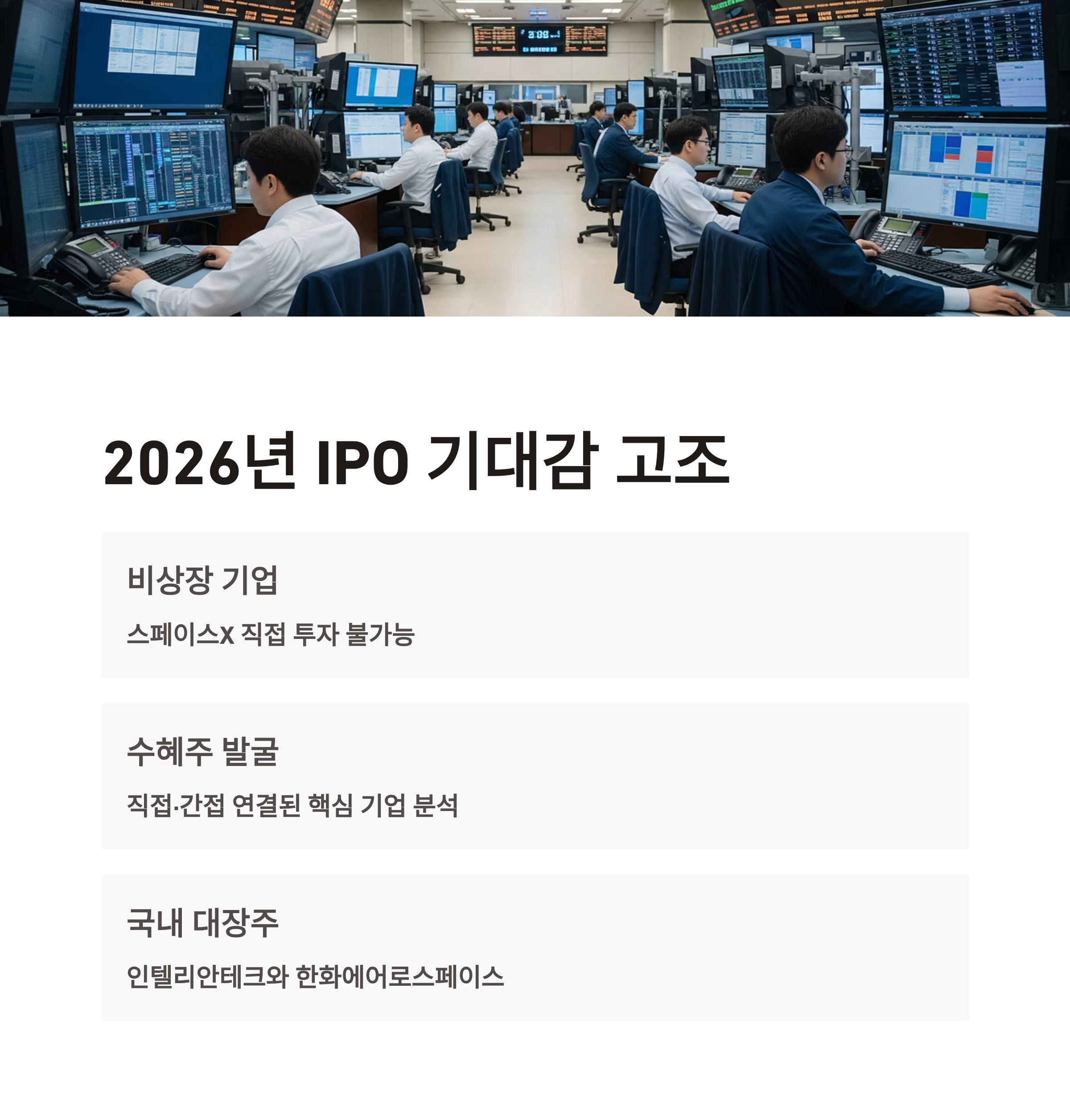 스페이스X(SpaceX)가 2026년 IPO 가능성을 띄우며 시장의 기대감을 끌어올리고 있습니다. 하지만 비상장인 SpaceX 자체에는 투자할 수 없기에, 우리는 그 직접 또는 간접 수혜주를 찾아야 합니다. 이 글에서는 미국 상장사 중 스페이스X 사업과 가장 직접적으로 연결된 핵심 수혜주들과, 국내 투자자가 접근할 수 있는 국내 대장주 후보 2종을 중심으로 분석합니다. 인텔리안테크와 한화에어로스페이스, 이 두 기업이 왜 스페이스X 대장주로 거론되는지, 그리고 어떤 전략으로 투자해야 할지를 깊이 있게 다뤄보겠습니다.