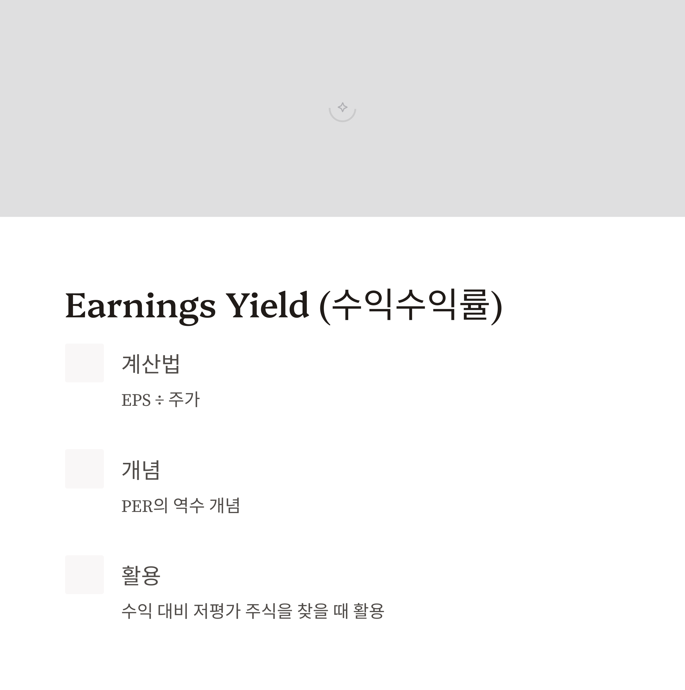 PER의 역수 개념으로, 이익 기준으로 투자 매력을 따집니다.