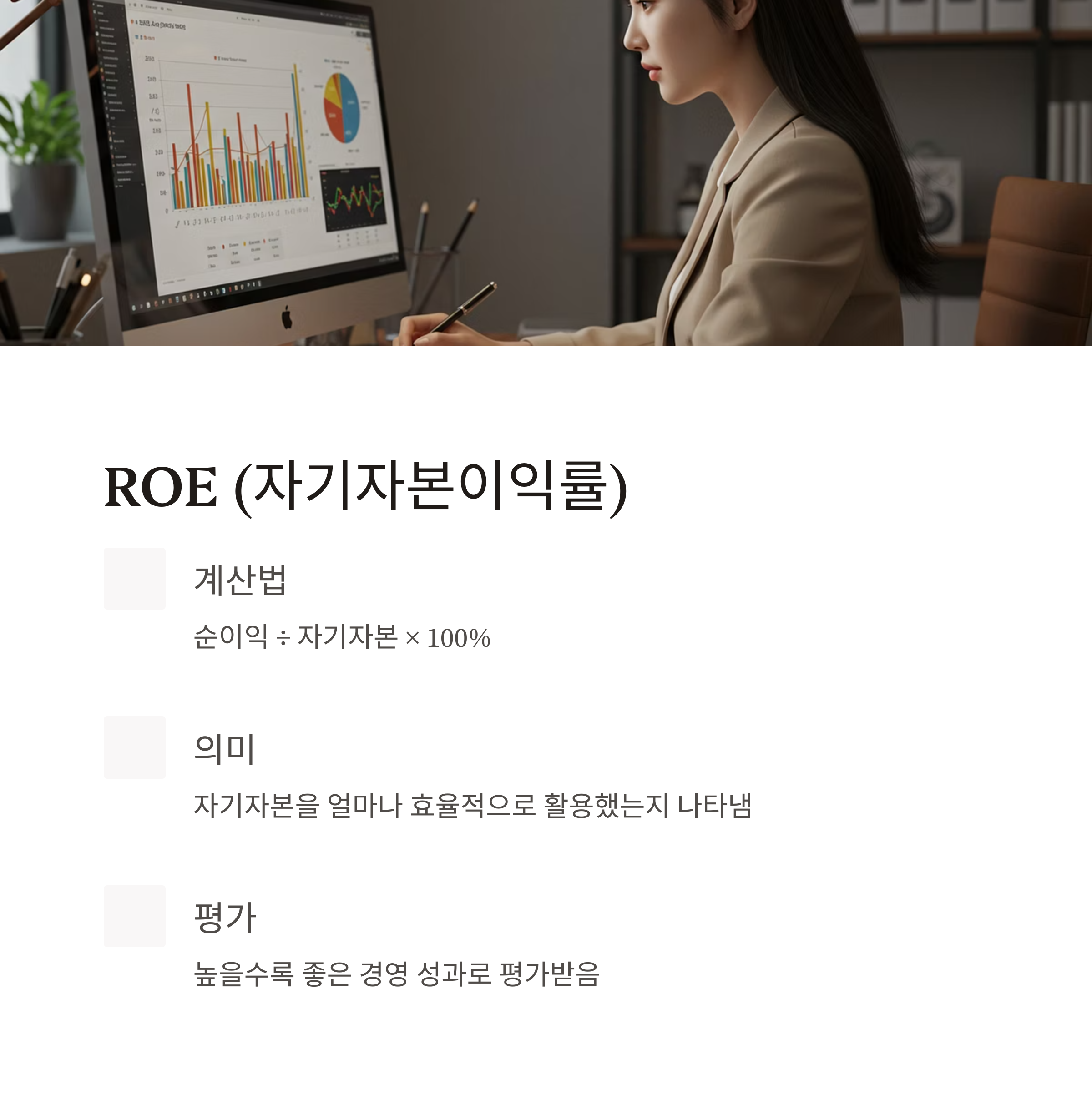 자기자본을 얼마나 효율적으로 활용했는지를 나타냅니다.