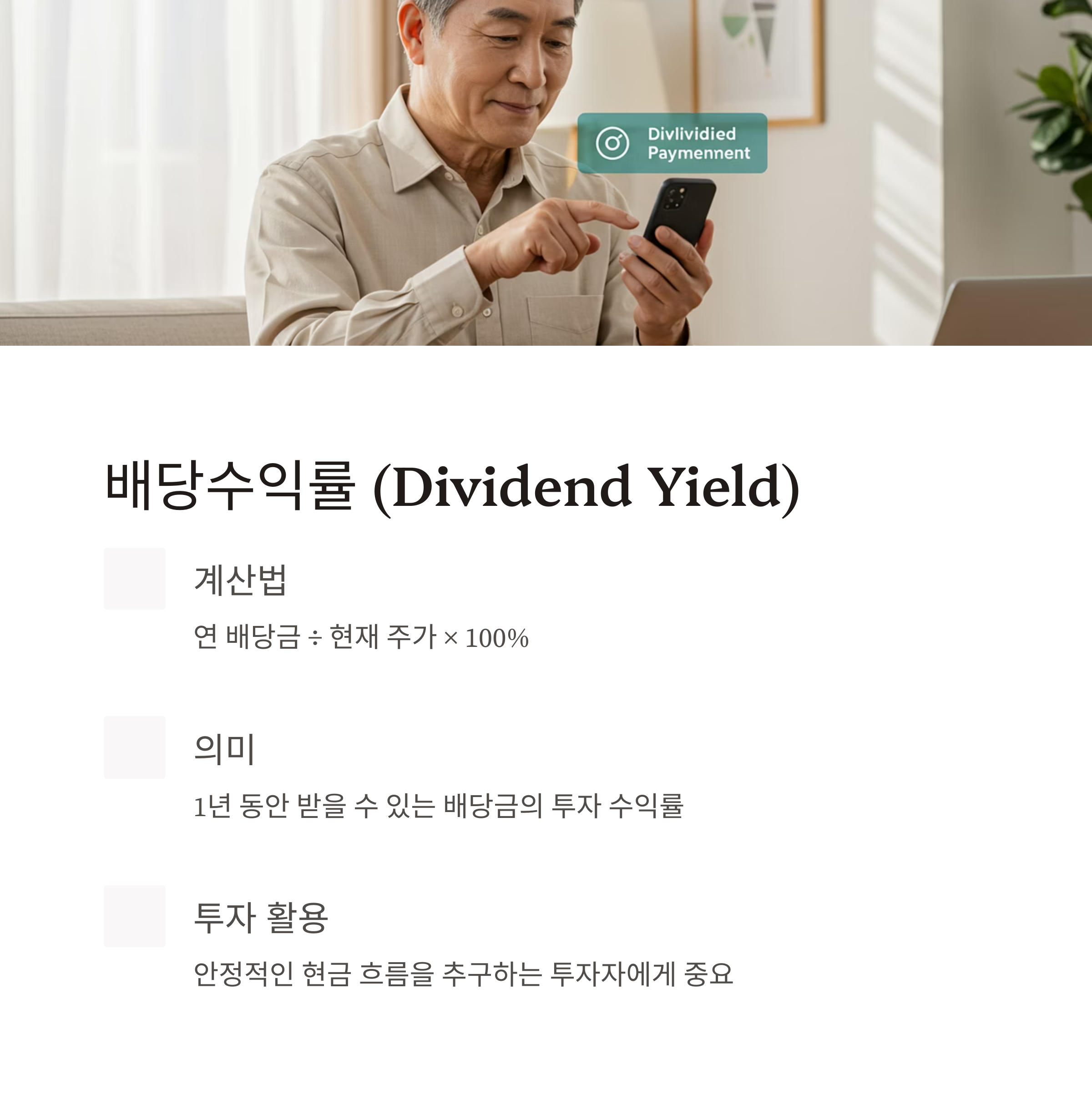 배당수익률 = 연 배당금 ÷ 현재 주가 × 100%
