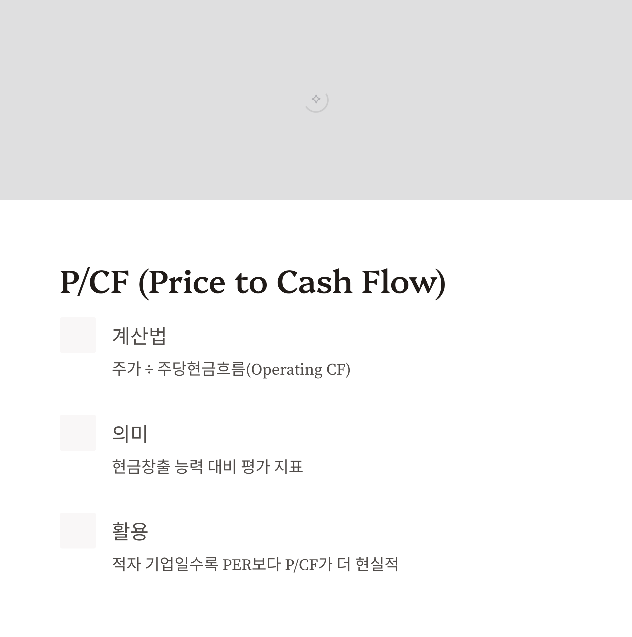 적자 기업일수록 PER보다 P/CF가 더 현실적입니다.