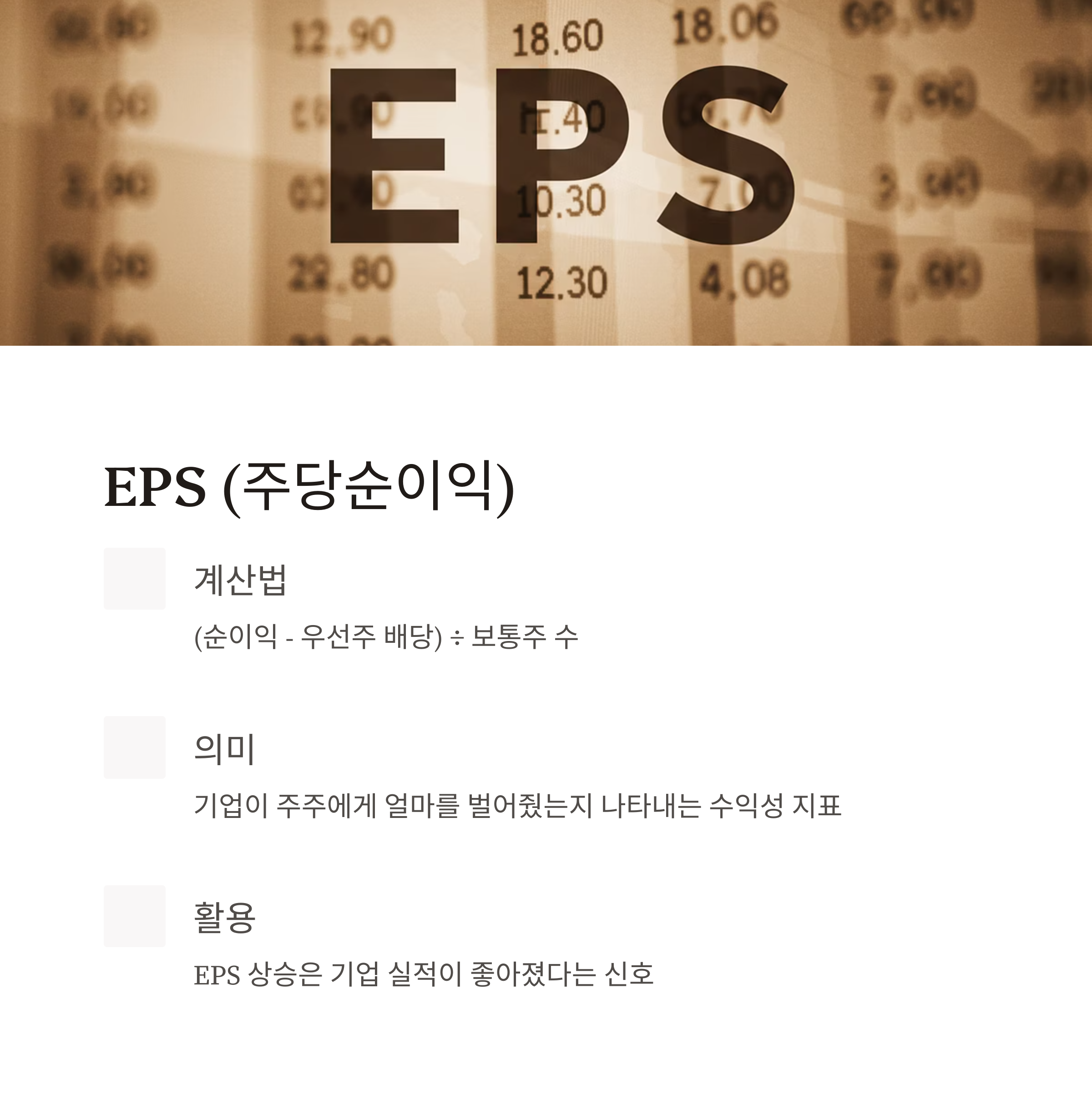 EPS = (순이익 - 우선주 배당) ÷ 보통주 수
