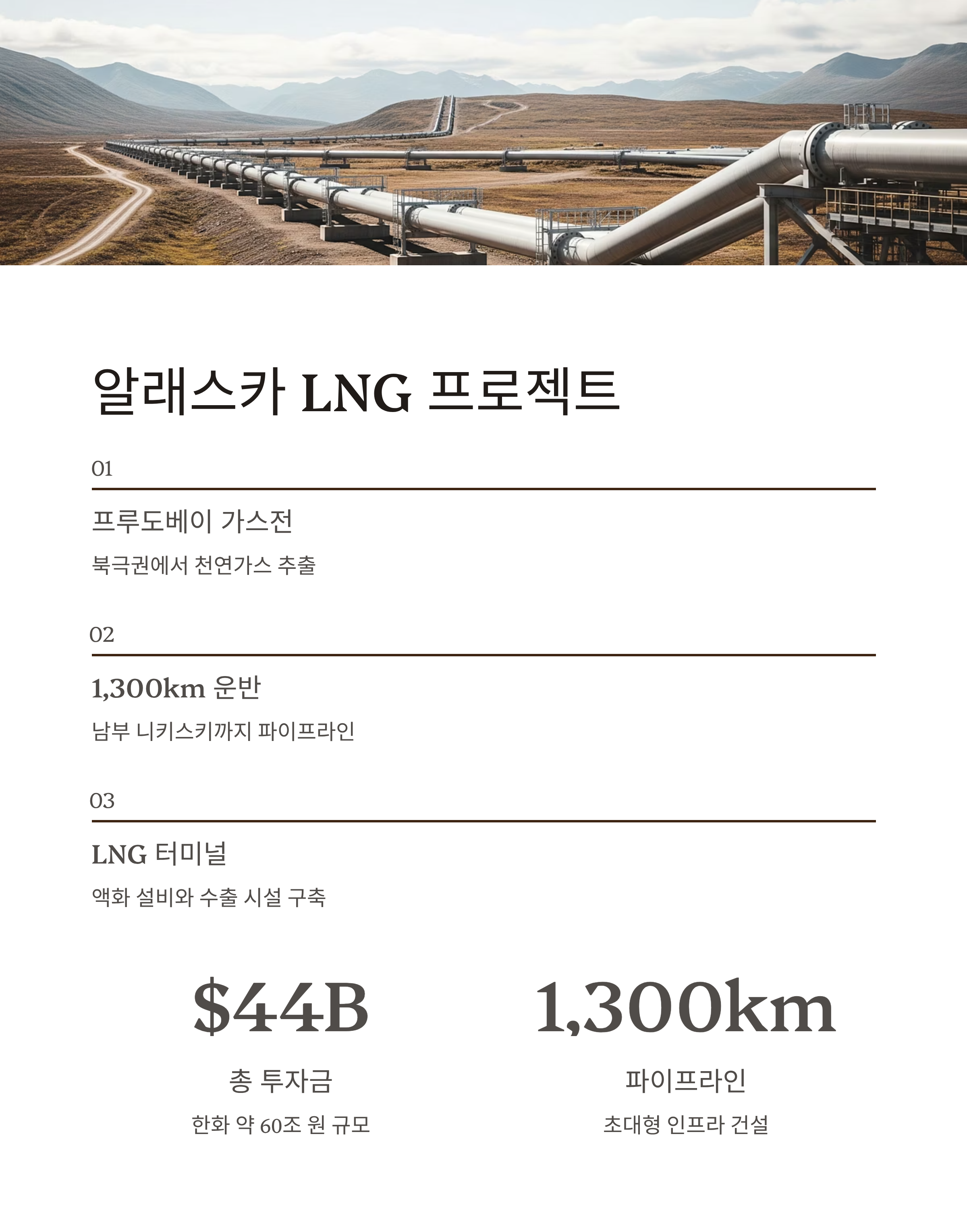 | 프로젝트 개요 | 알래스카→니키스키 1,300km 가스관 + LNG 액화시설 구축 |