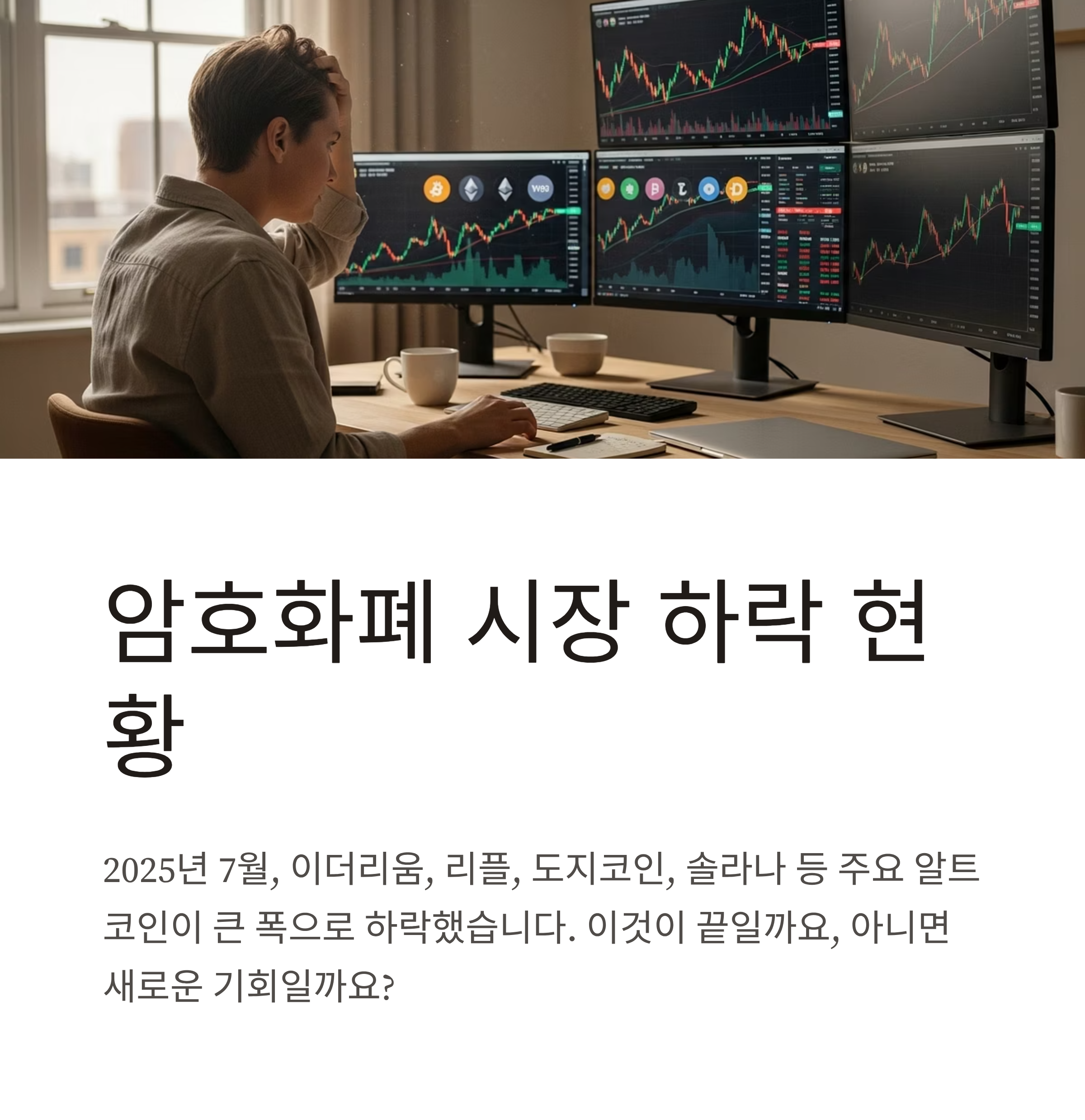 알트코인 폭락은 끝났을까? 2025년 하락장 진단과 대응 전략 3단계 가이드하락장이 반복될 때마다 어떻게 대처해야 할까? 알트코인 중심 분석과 실전 투자 전략2025년 7월, 암호화폐 시장에서 알트