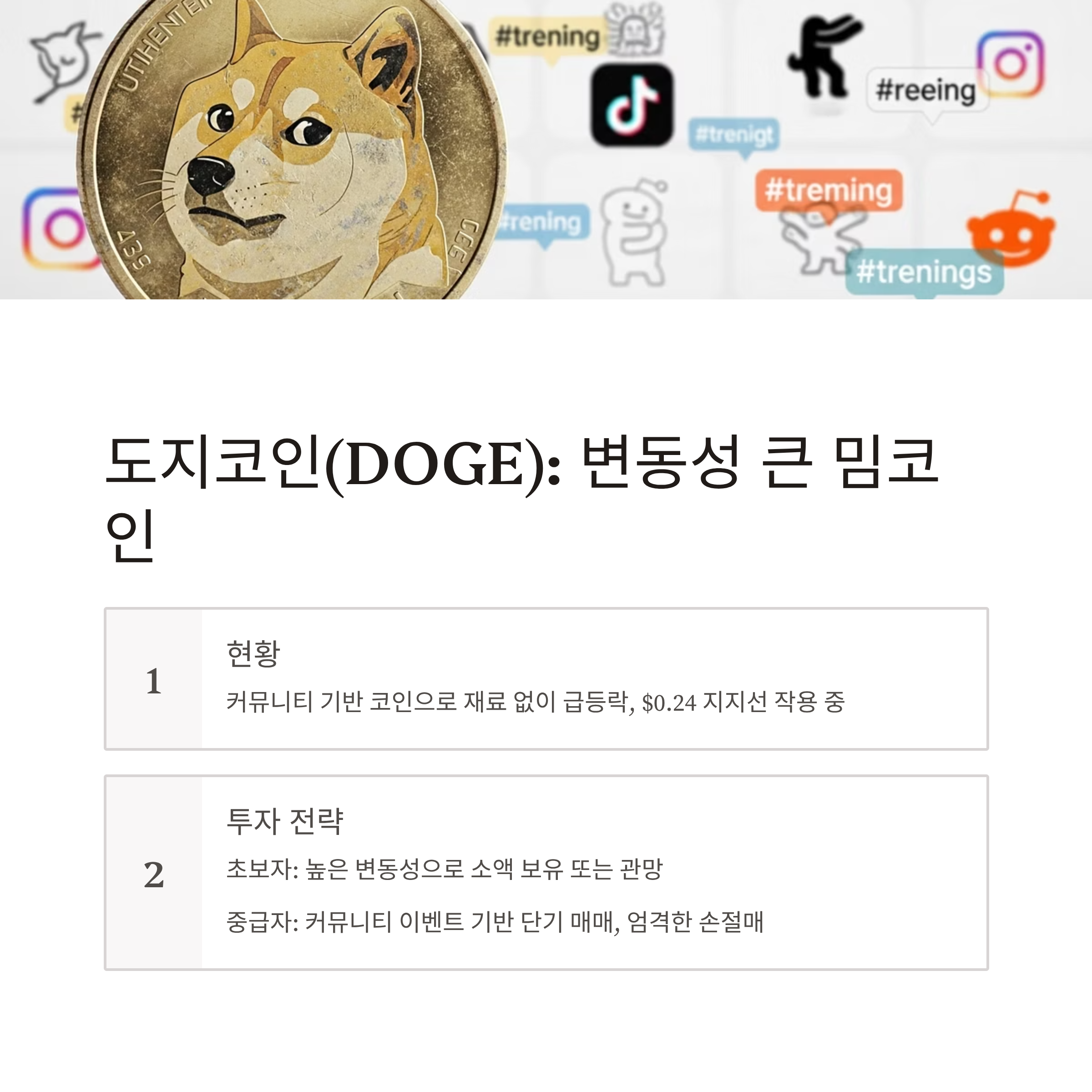 - 중급자: 커뮤니티 이벤트나 유명 인사 발언에 따른 단기 매매 가능, 손절매 엄격 적용