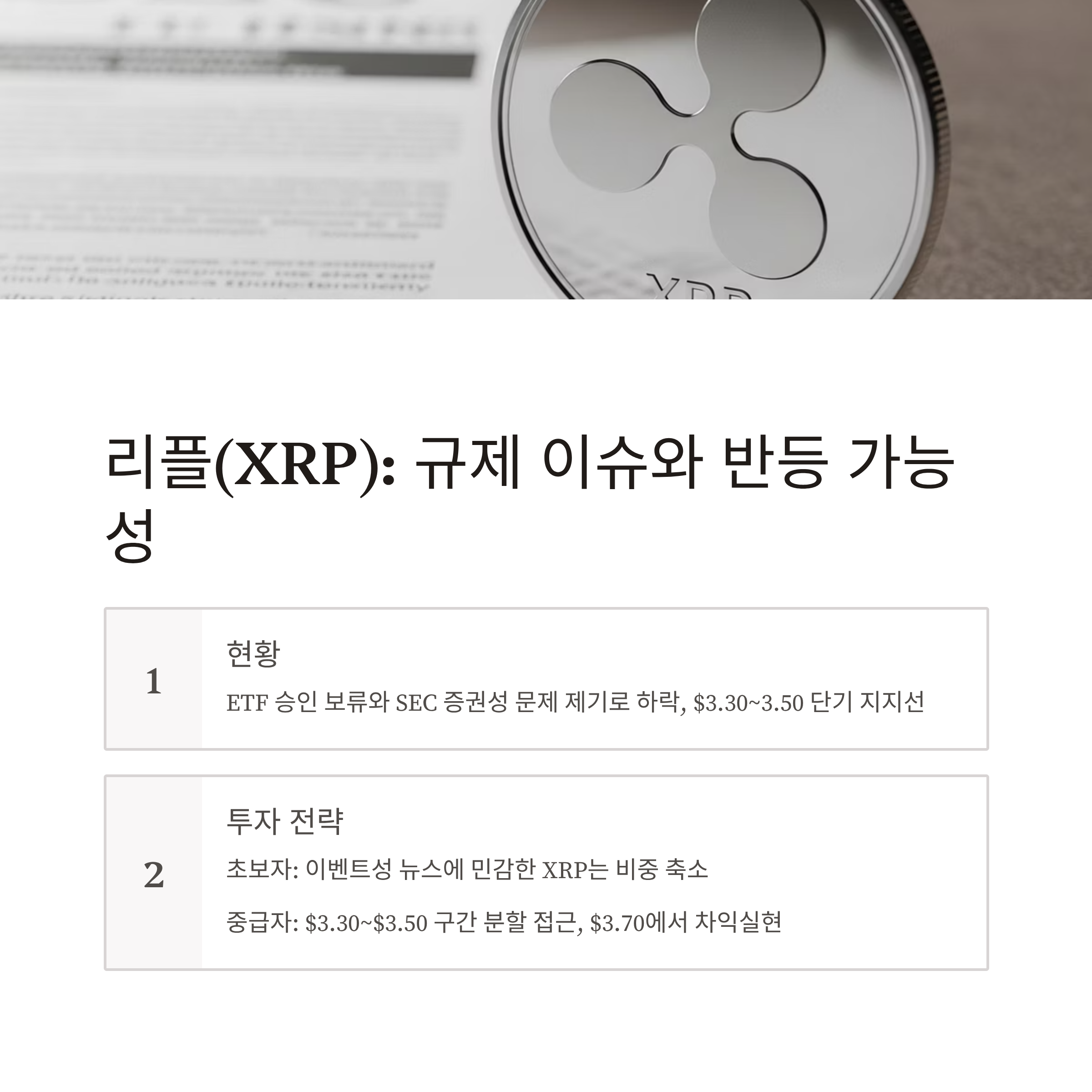 리플(XRP): 규제 이슈 재점화와 반등 가능성